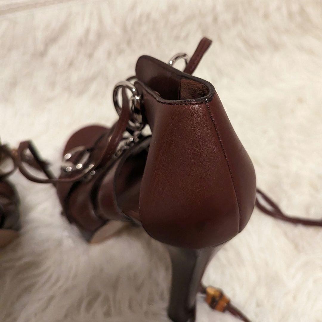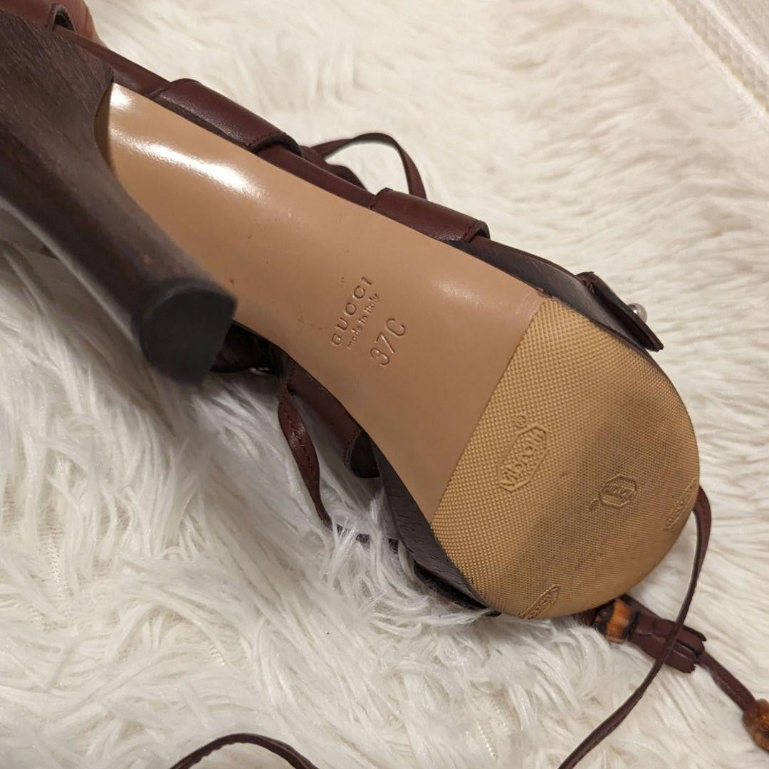 GUCCI Sandals Shoes EU 37.0 US 7.0 Leather Brown Authentic