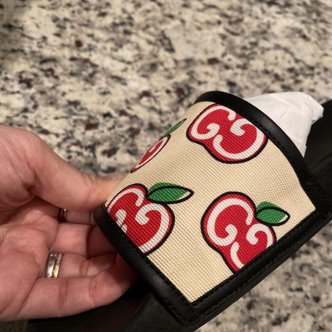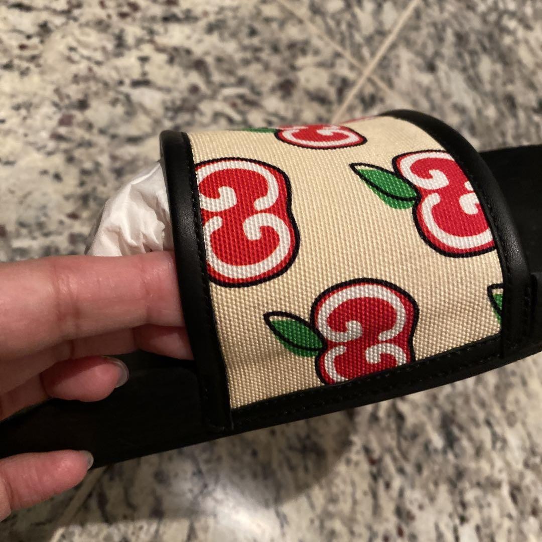 GUCCI Sandals Shoes GG Apple EU 37.5 US 7.5 Canvas Authentic
