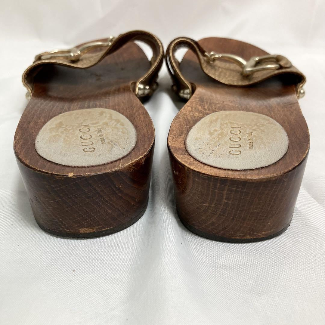 GUCCI Sandals Shoes Horse bit EU 37.0 US 7.0 Brown Gold Authentic