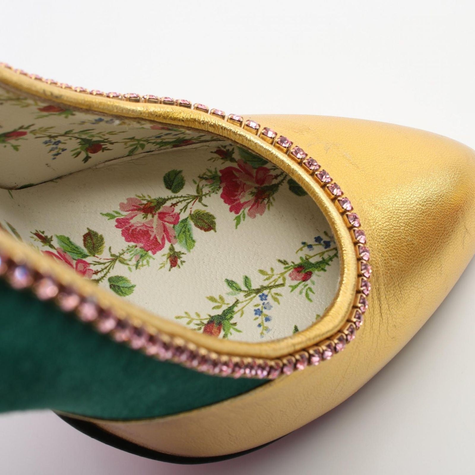 GUCCI Shoes Pumps Heel EU 34.5 US 4.5 Leather Suede Multicolor Authentic