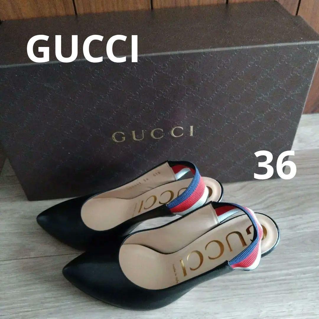 GUCCI Shoes Pumps Heel EU 36 US 6 Leather Black Authentic