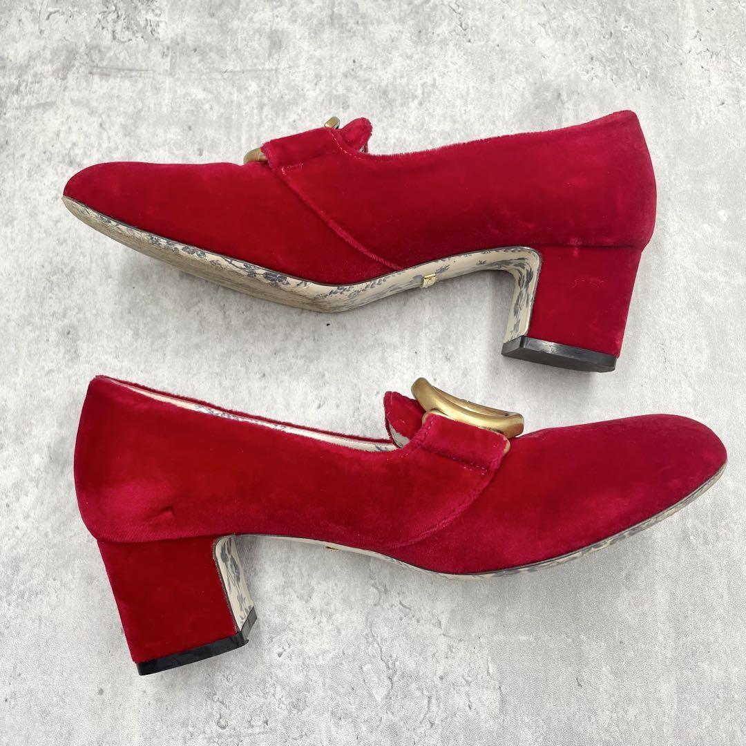 GUCCI Shoes Pumps Heel GG EU 36 US 6 Red Authentic