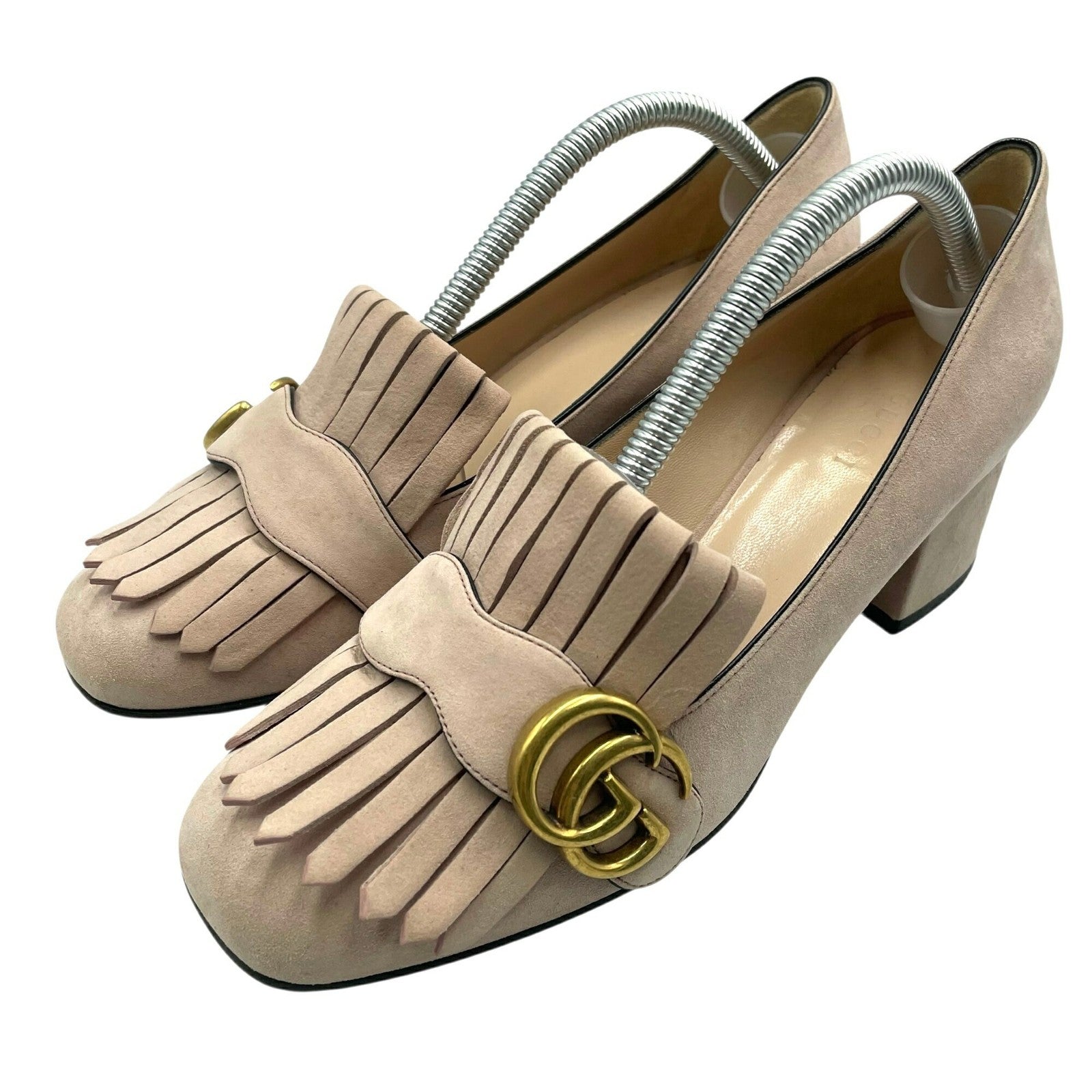 GUCCI Shoes Pumps Heel GG EU 37 US 7 Suede Pink Authentic