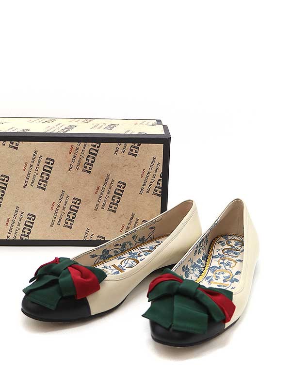 GUCCI Shoes Pumps Heel Sherry Line Flora Flower EU 35.5 US 5.5 White Authentic