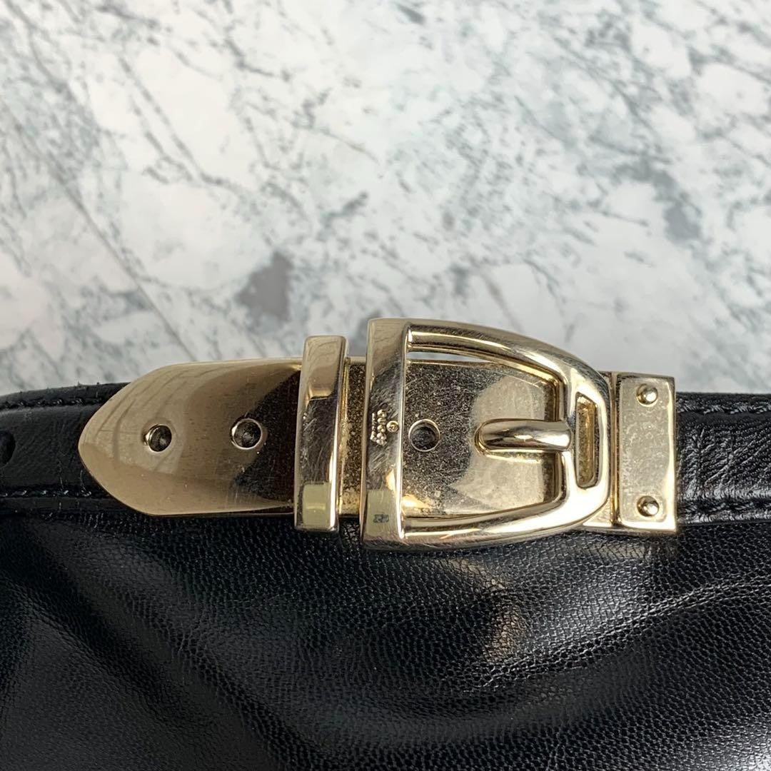 There are small scratches on the leather and heel, but they are not noticeable and the item is still in good condition.