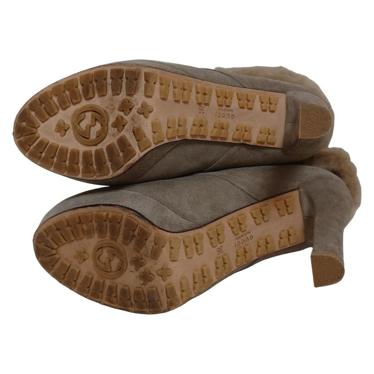 GUCCI Short Boots Shoes EU 36 US 6 Mouton Gray Beige Authentic