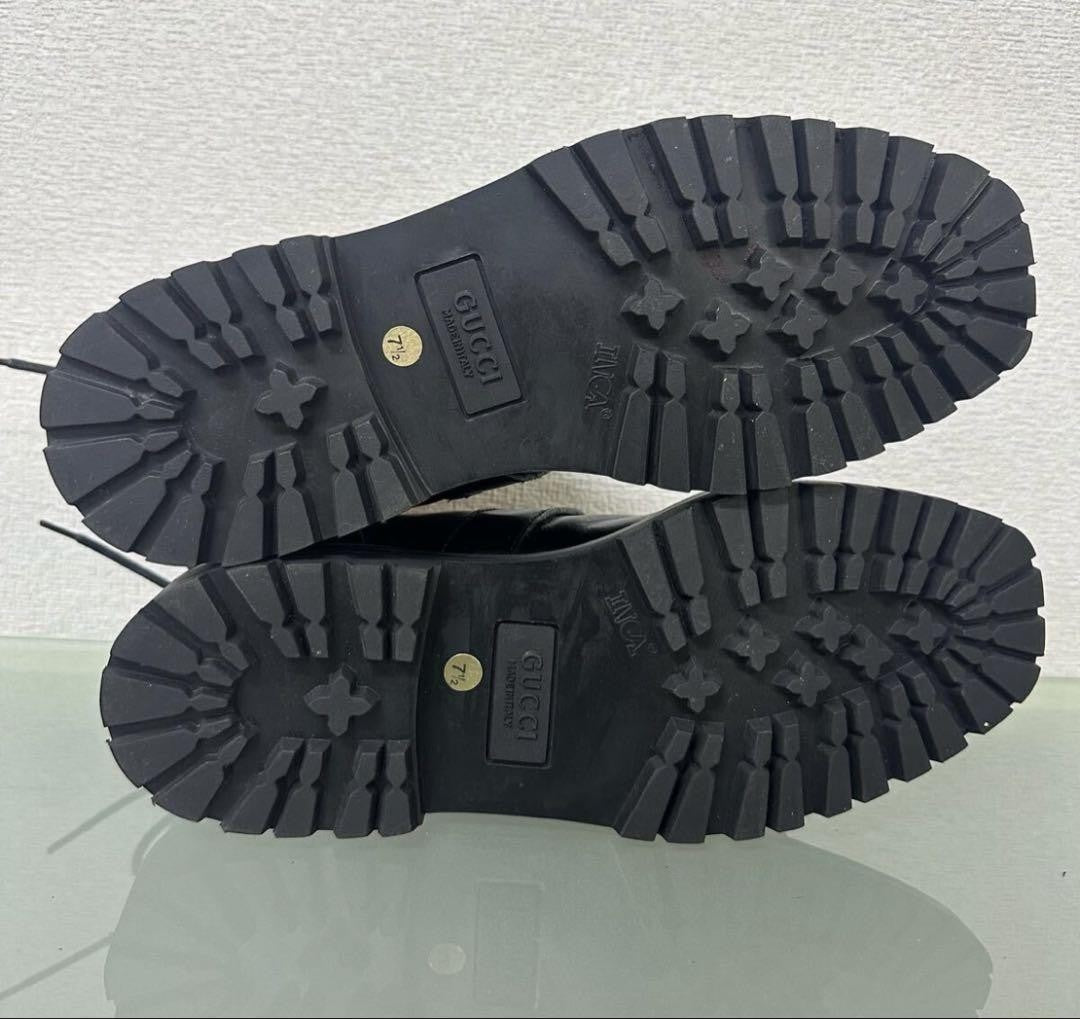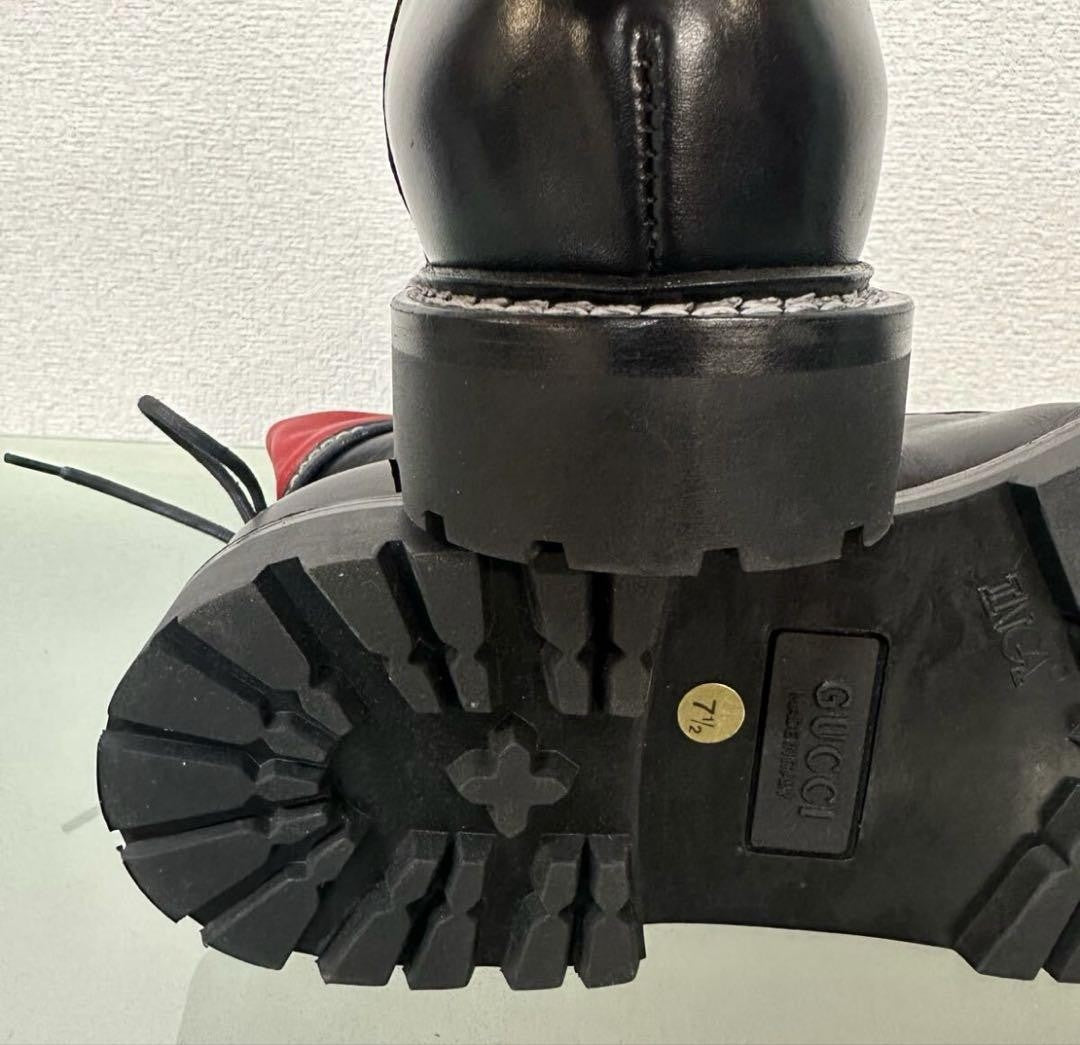 GUCCI Short Boots Shoes EU 37.5 US 7.5 Leather Black Red Authentic