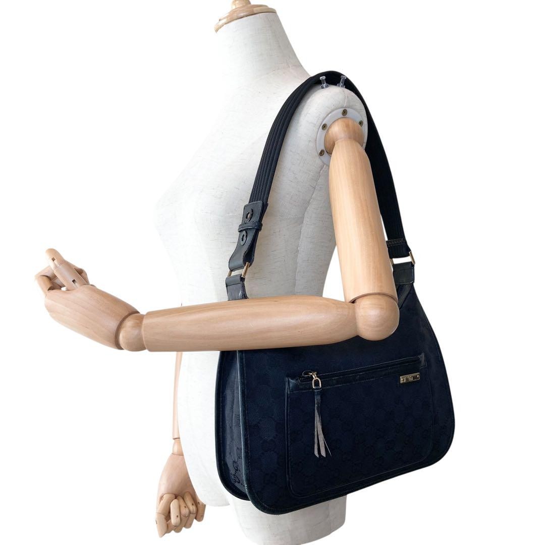 GUCCI Shoulder Bag Purse GG Canvas Black Authentic