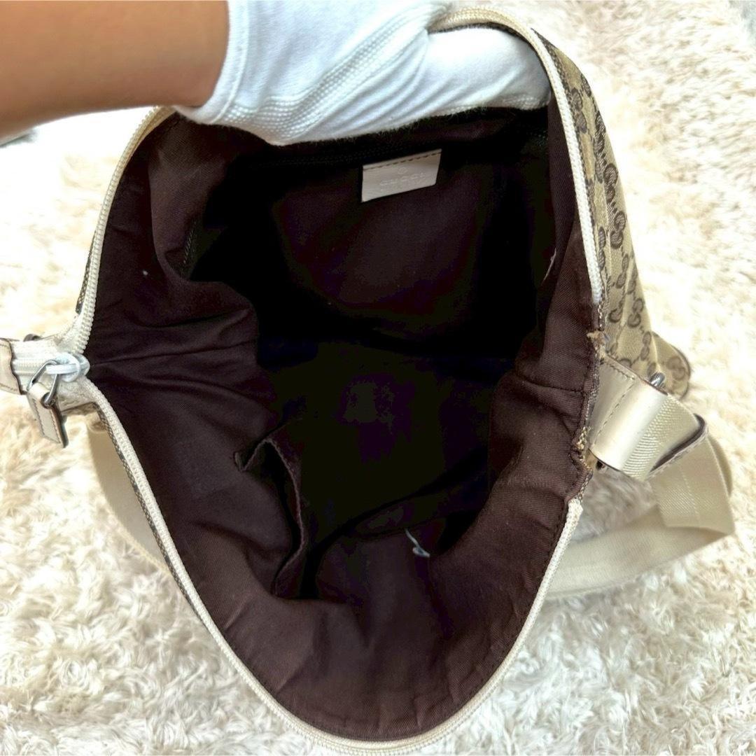 GUCCI Shoulder Bag Purse GG Canvas Leather Beige White Authentic