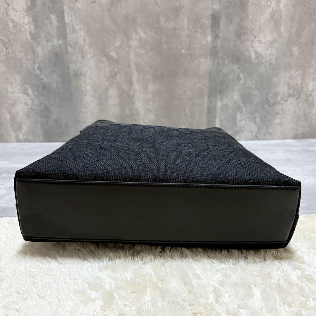 GUCCI Shoulder Bag Purse GG Canvas Leather Black Authentic