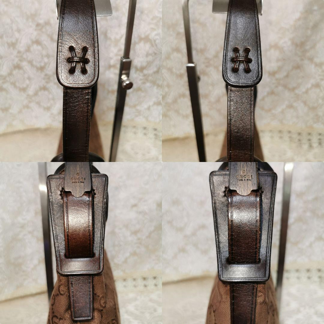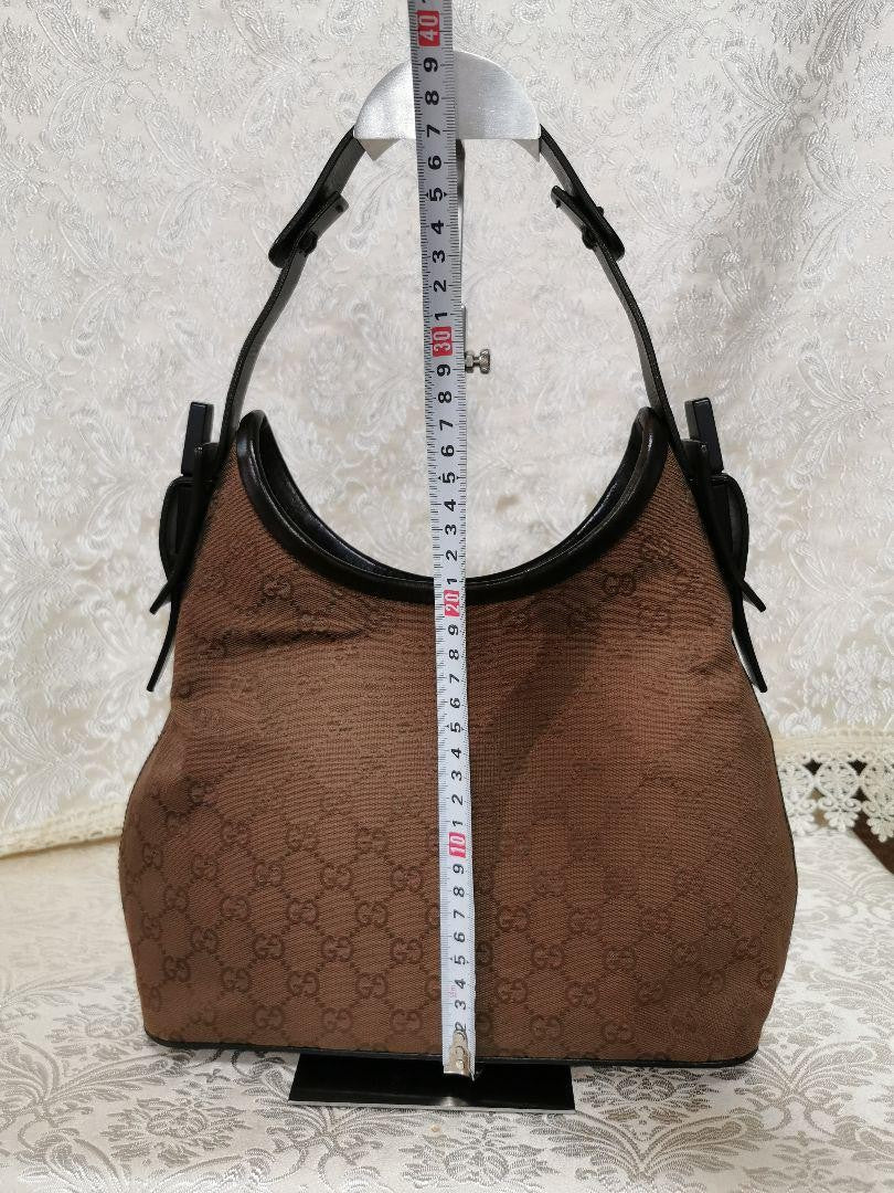GUCCI Shoulder Bag Purse GG Canvas Leather Dark Brown Authentic