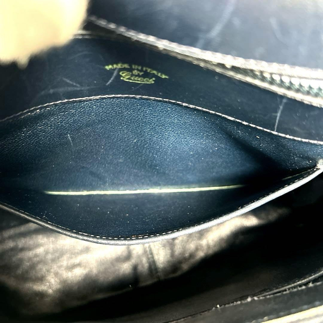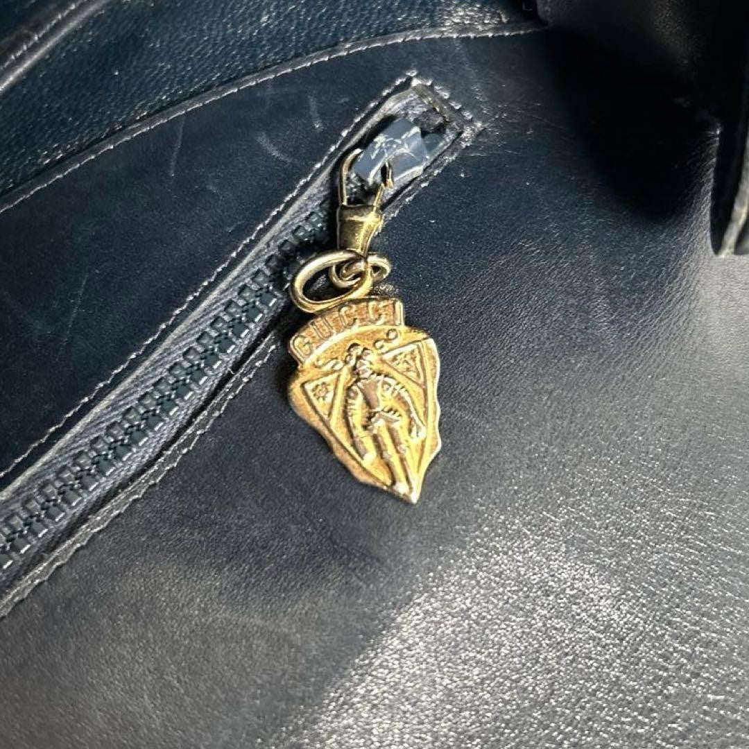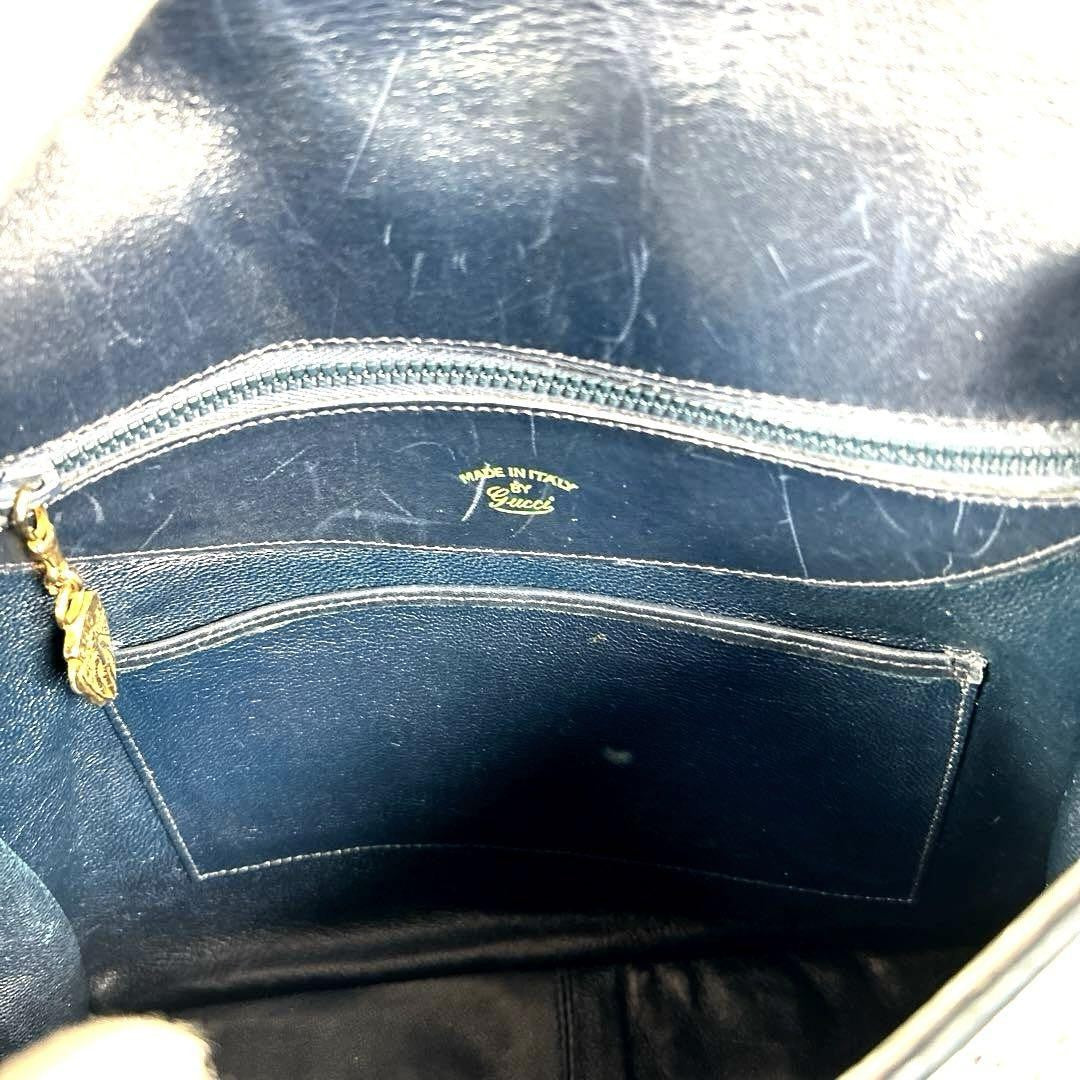 GUCCI Shoulder Bag Purse GG Canvas Leather Navy Authentic