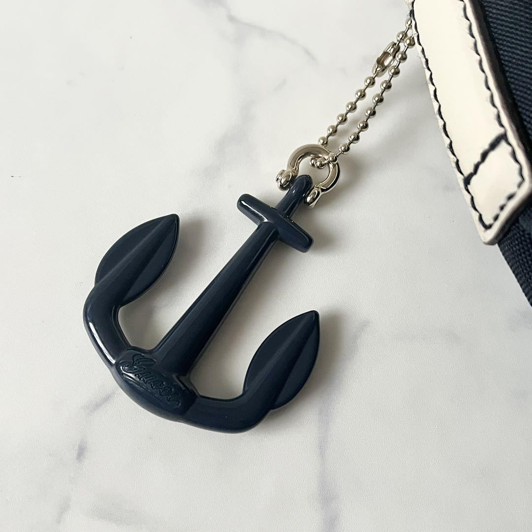 GUCCI Shoulder Bag Purse Logo Nylon Leather Navy White Authentic
