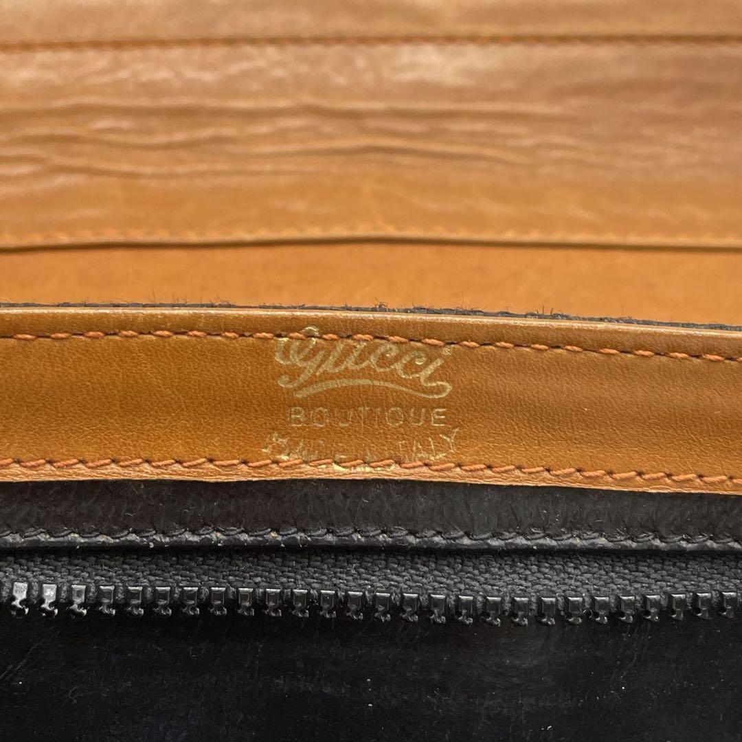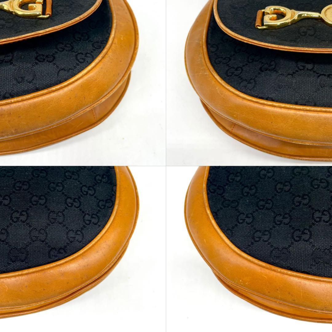 GUCCI Shoulder Bag Purse OLD Horsebit Canvas Leather Black Brown Authentic