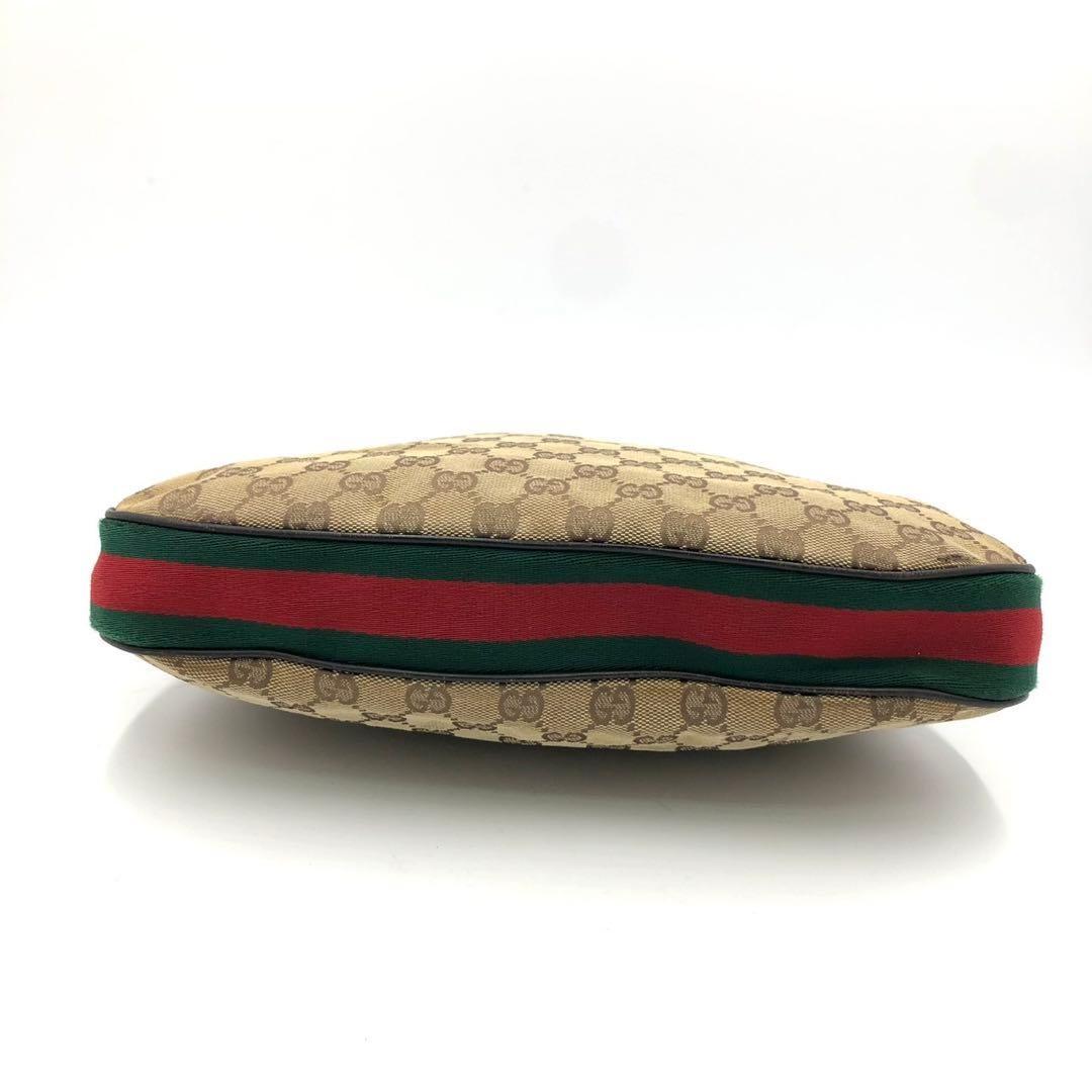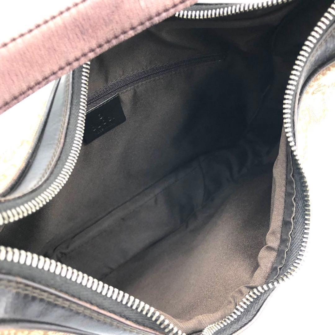 GUCCI Shoulder Bag Purse Sherry Line GG Canvas Leather Beige Dark Brown Auth