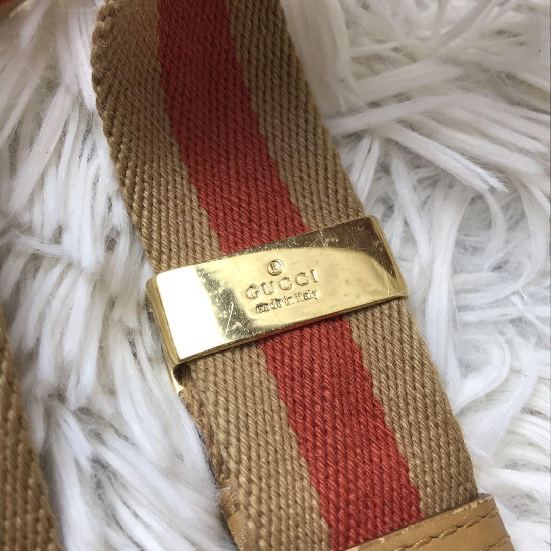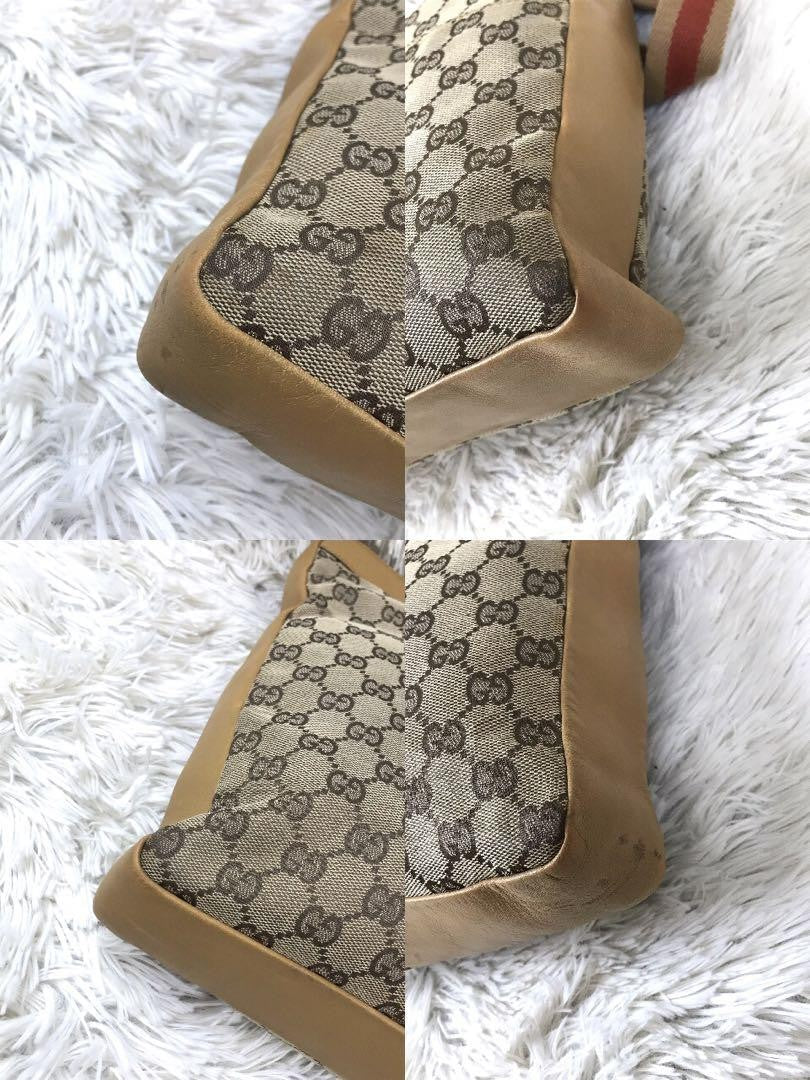 GUCCI Shoulder Bag Purse Sherry Line GG Canvas Leather Camel Beige Authentic