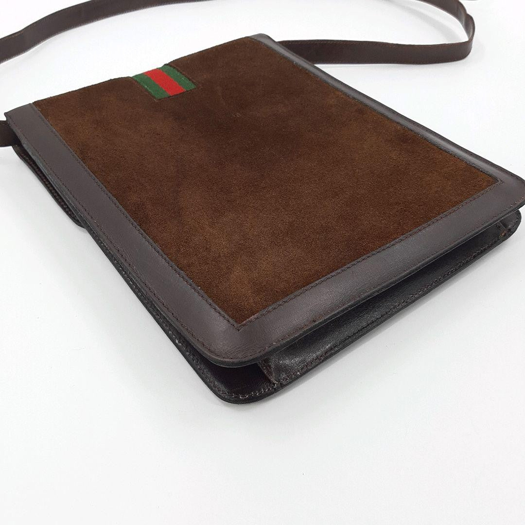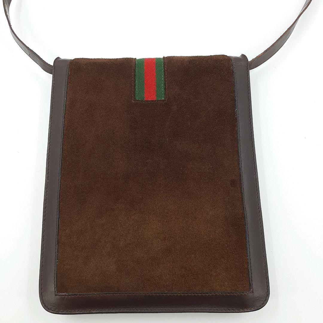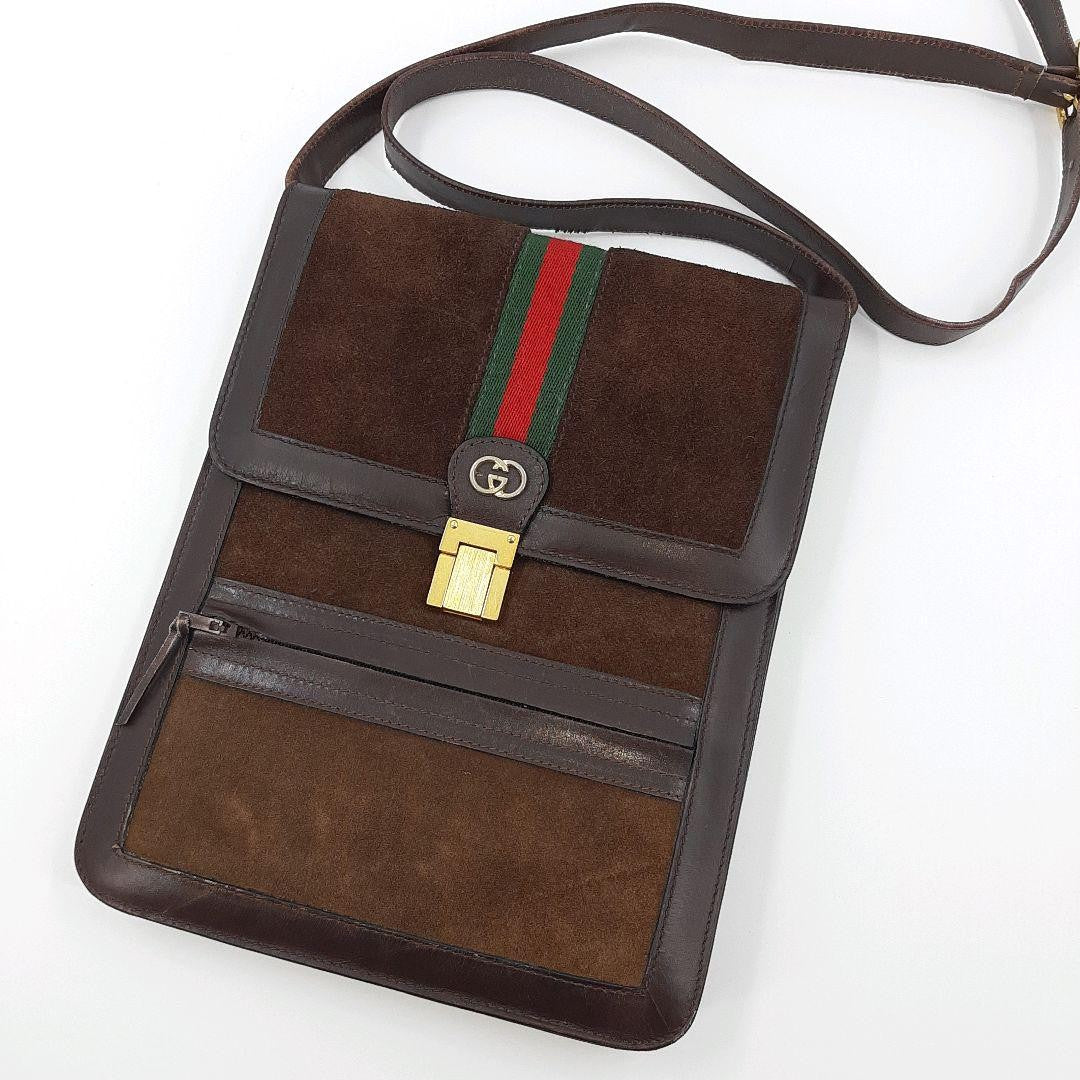 GUCCI Shoulder Bag Purse Sherry Line Interlocking Logo Suede Leather Brown Auth