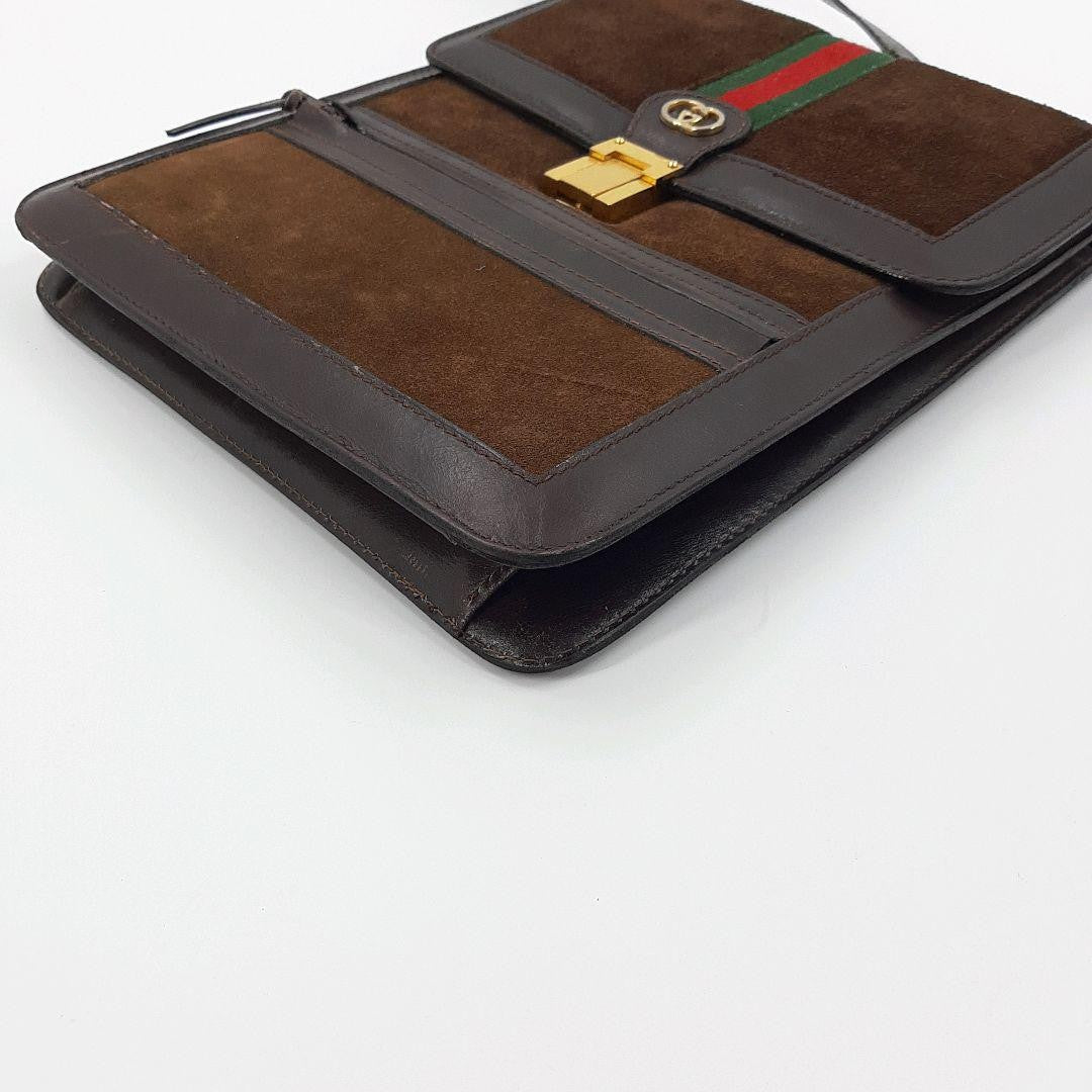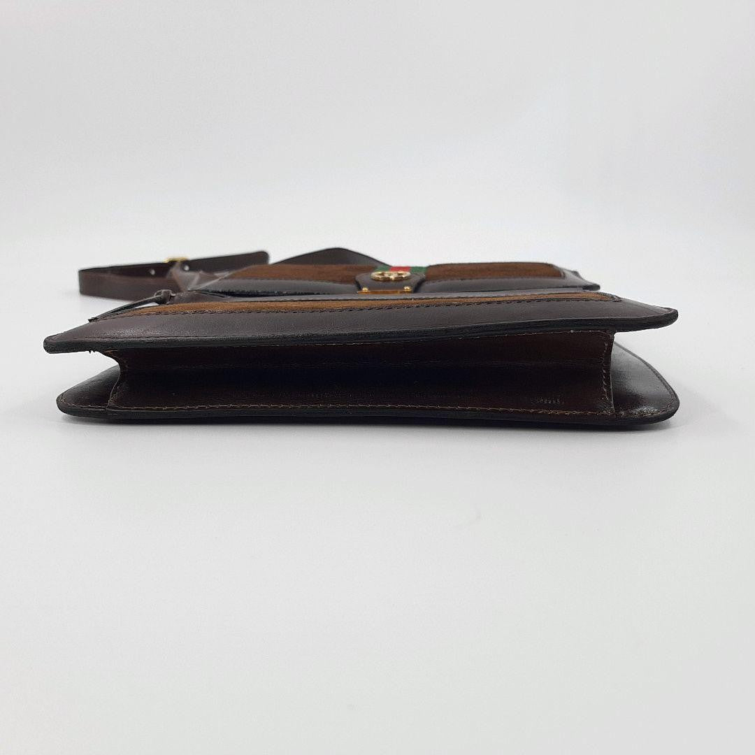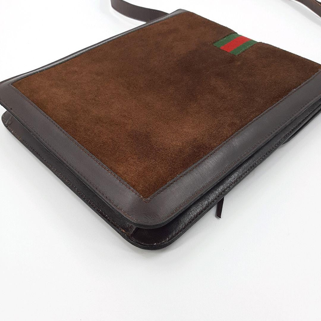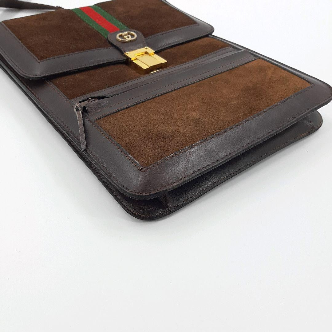GUCCI Shoulder Bag Purse Sherry Line Interlocking Logo Suede Leather Brown Auth