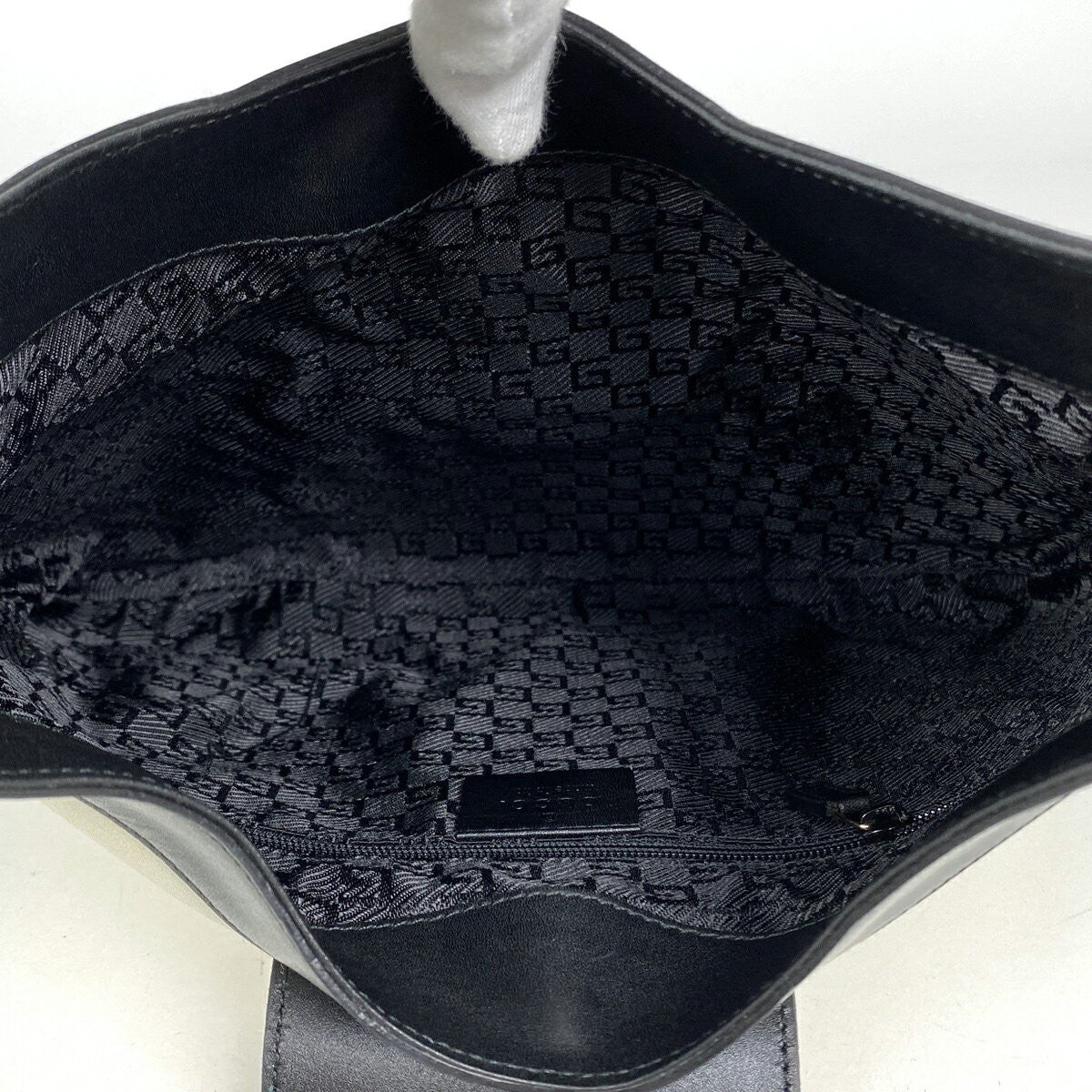GUCCI Shoulder Bag Purse Suede Leather Beige Black Authentic