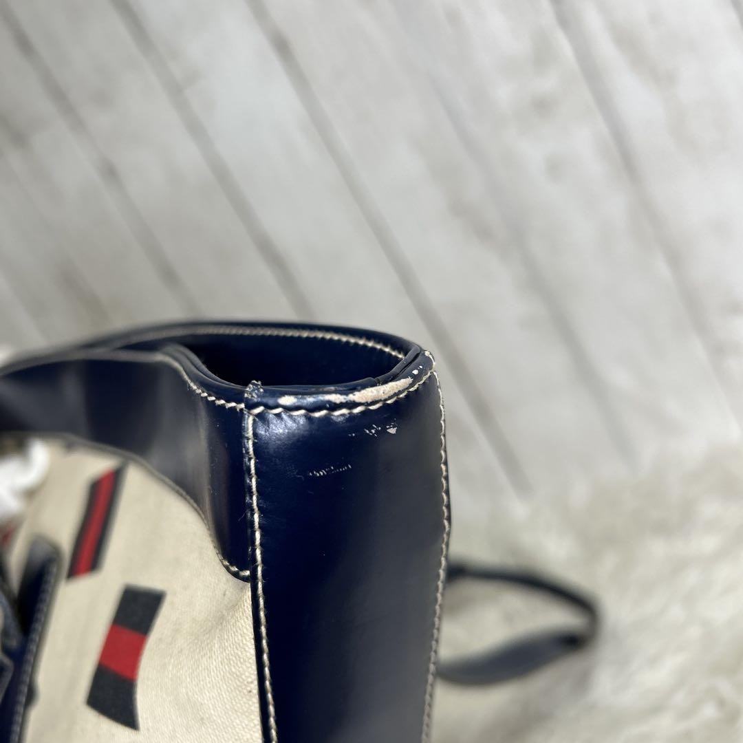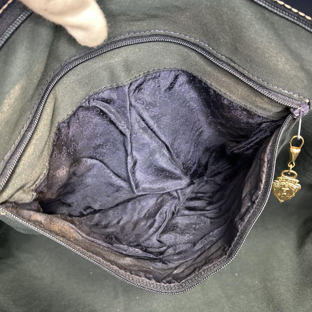 GUCCI Tote bag Purse handbag GG logo Sherry line Old Gucci Canvas Leather Auth