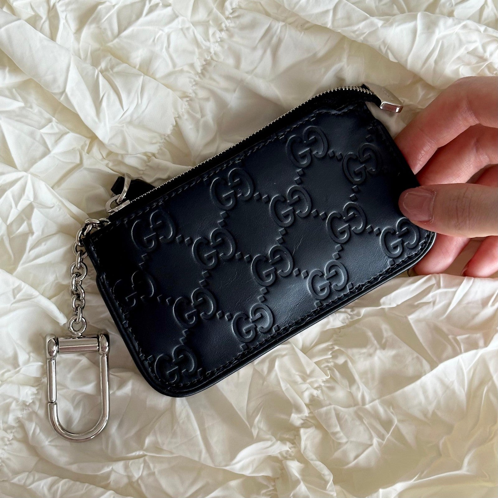 GUCCI Wallet GG Shima Coin Case Key Pouch Card Holder Compact Purse Leather
