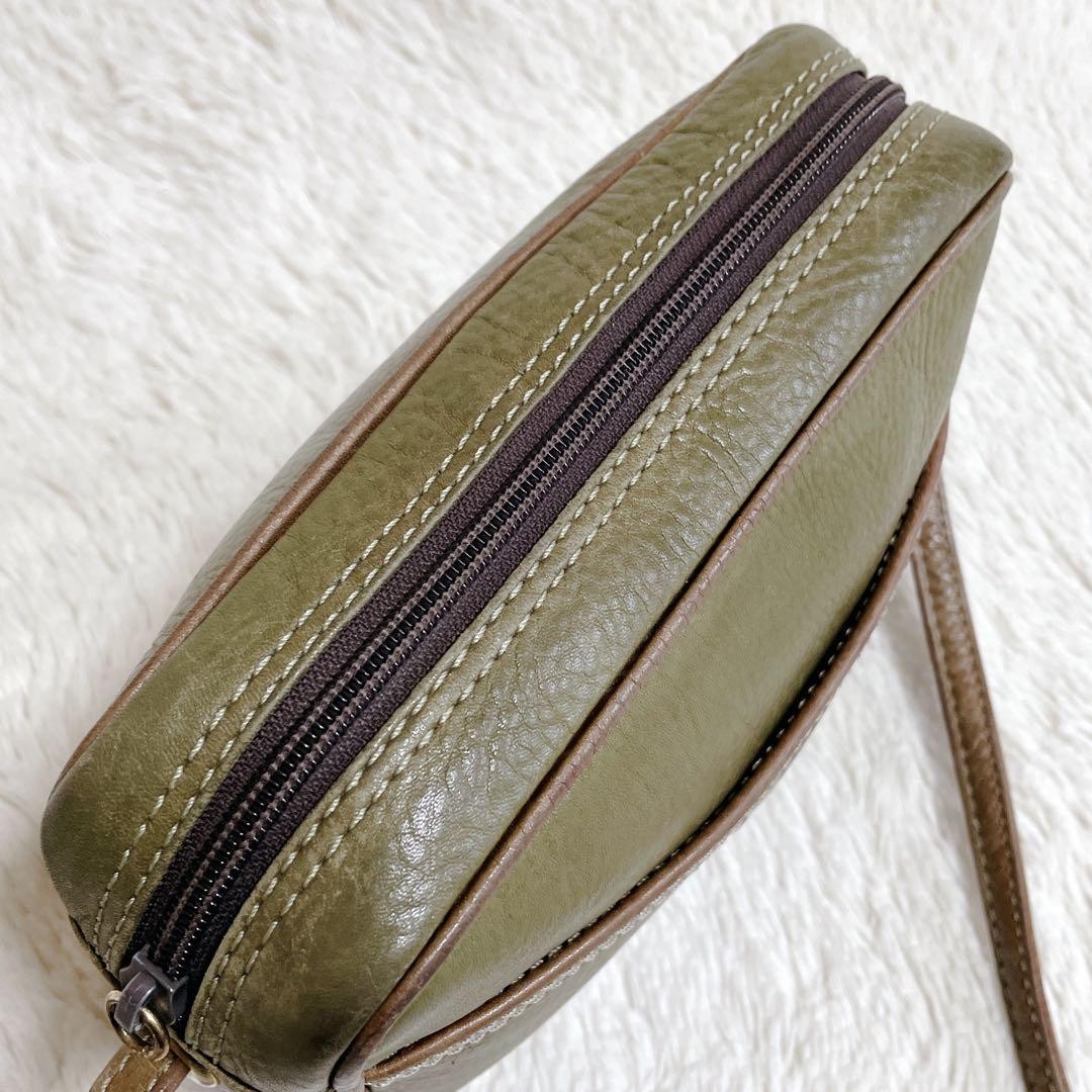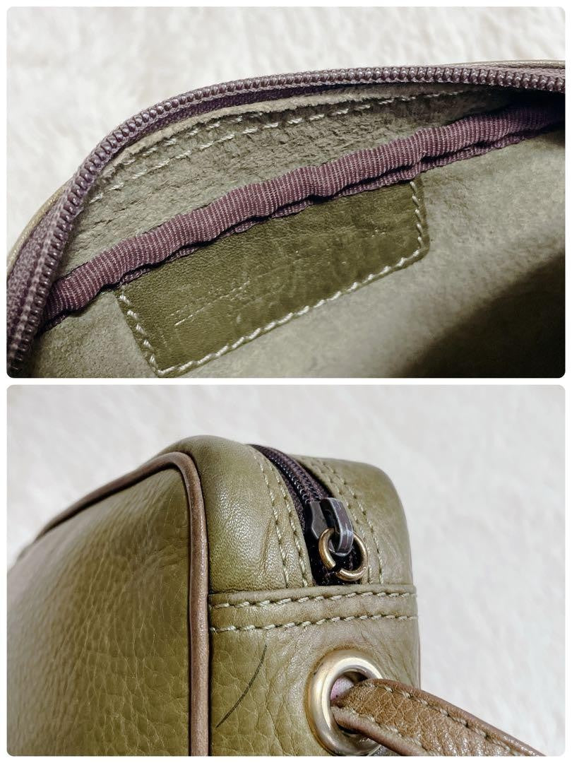 LOEWE 70s Logo Leather Purse Shoulder Bag brown kahki Women's Used Authentic