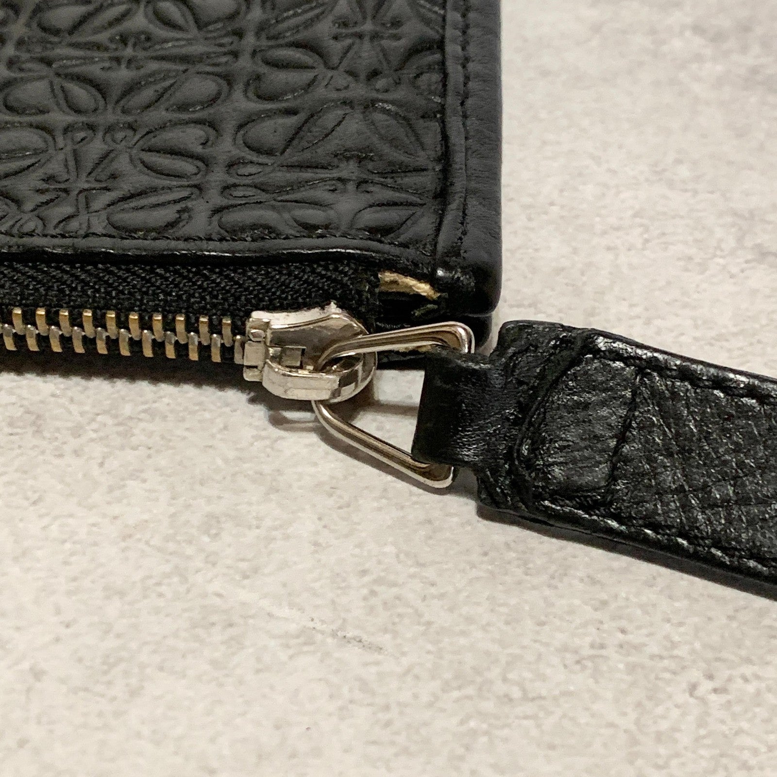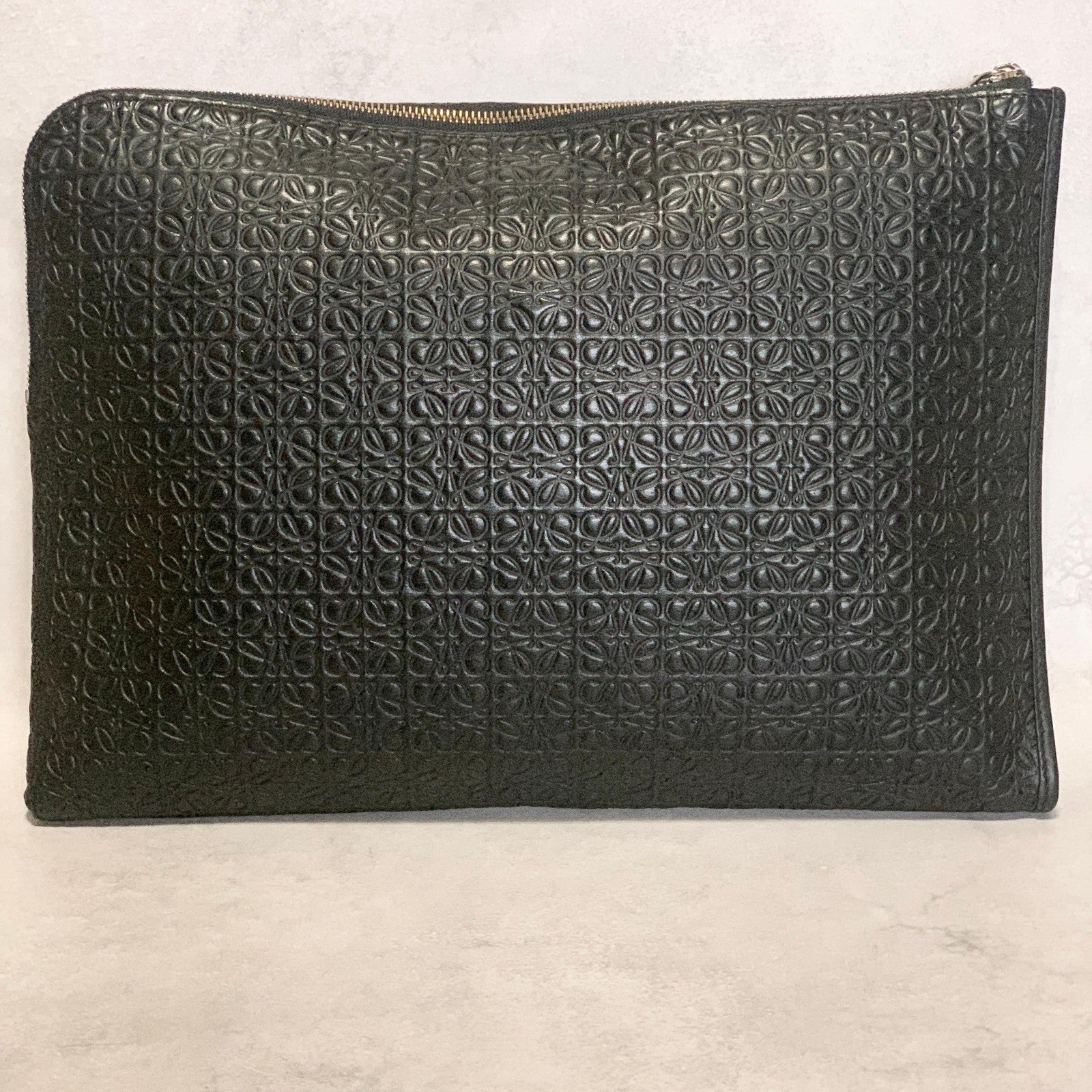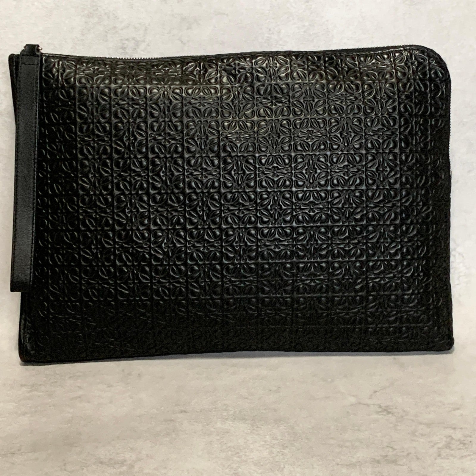 LOEWE Bag Anagram Clutch Purse Hand Leather Black Silver Used Authentic