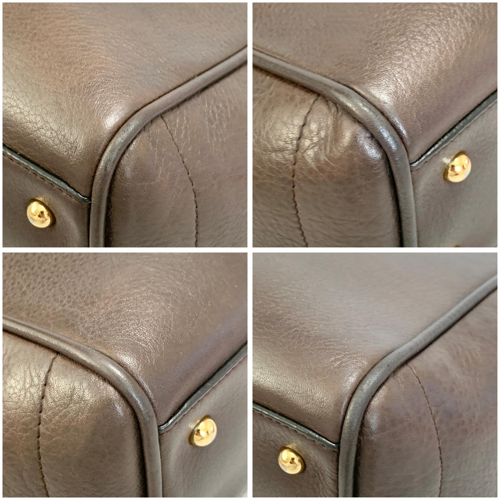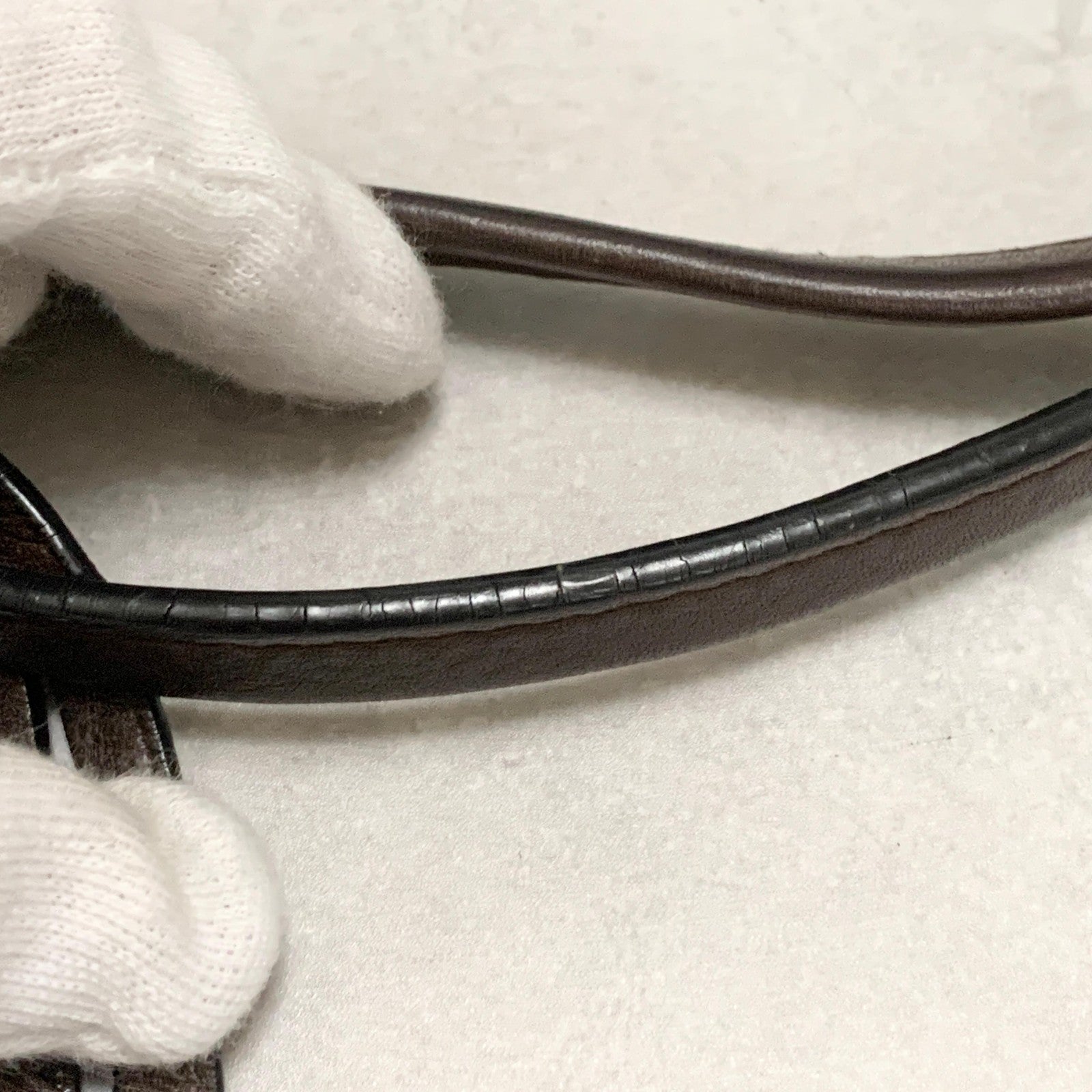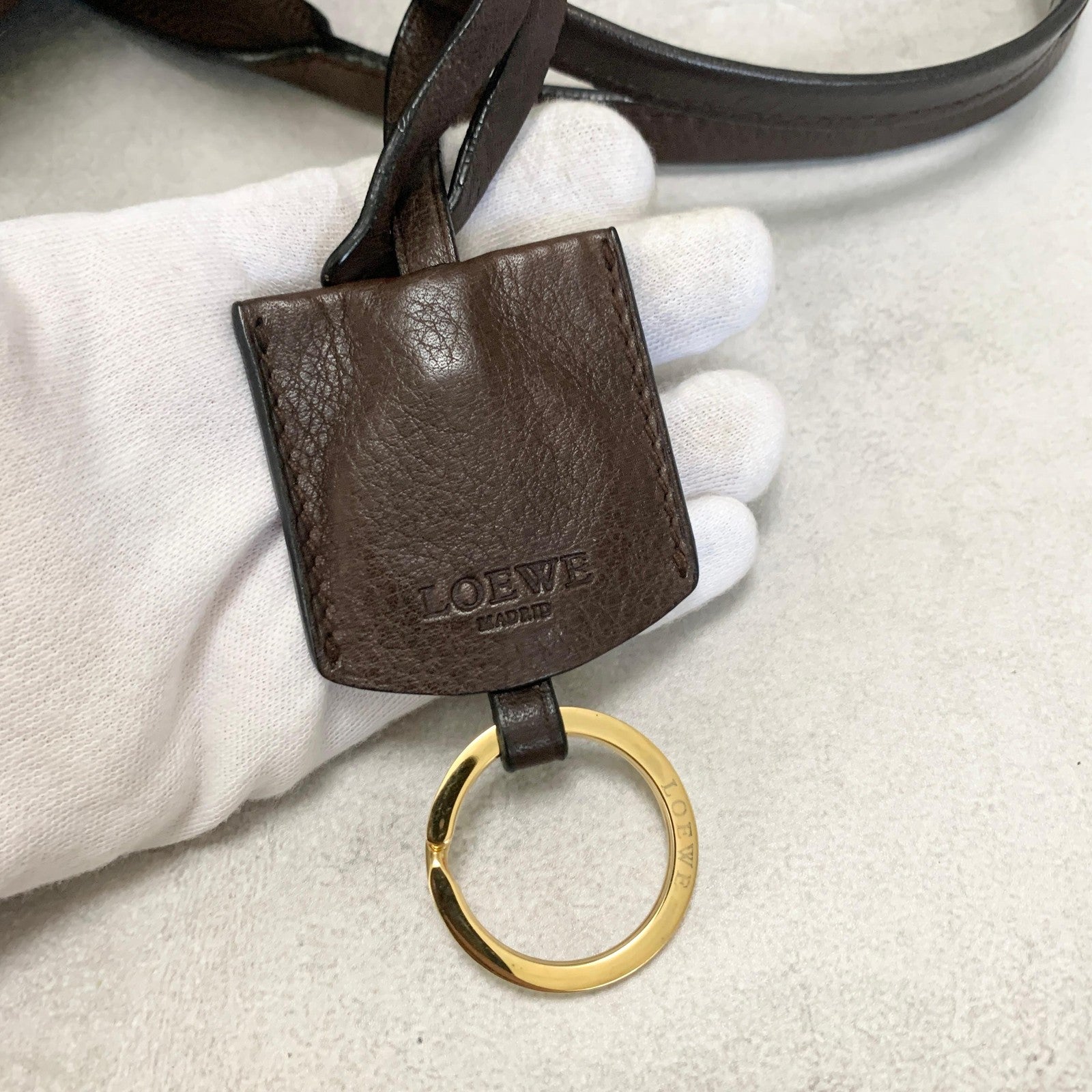 LOEWE Bag Logo Heritage Hand Tote Purse Leather Brown Gold Used Authentic