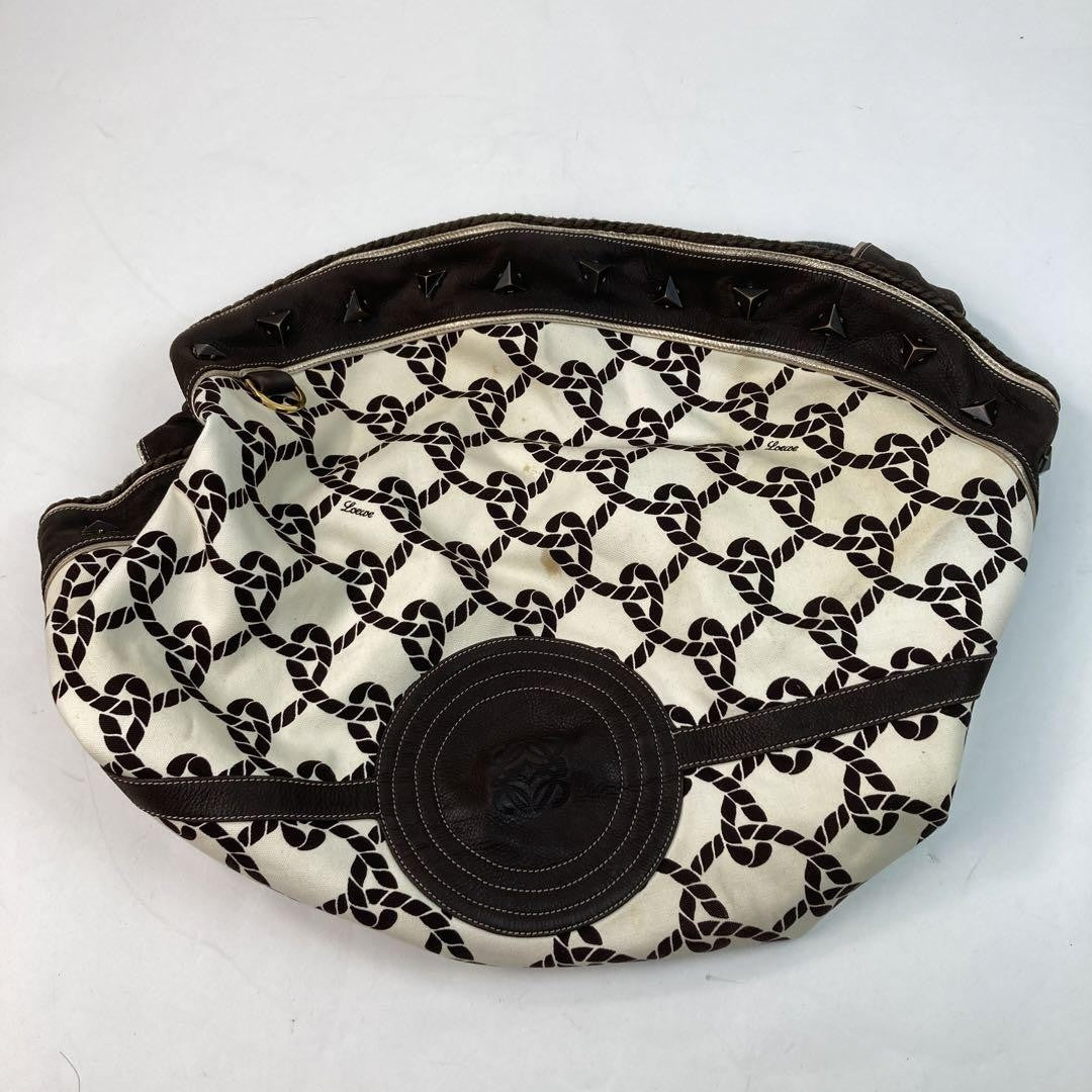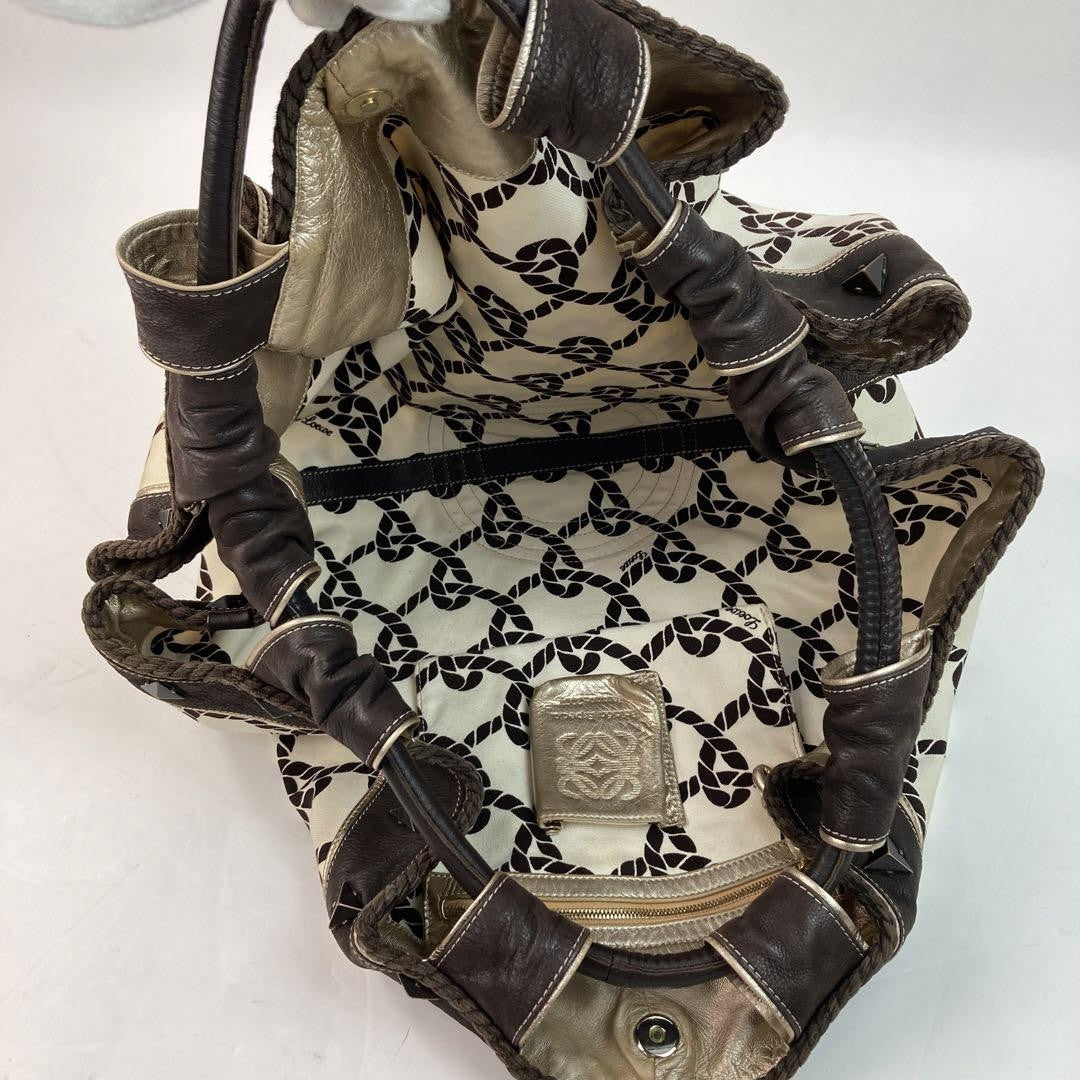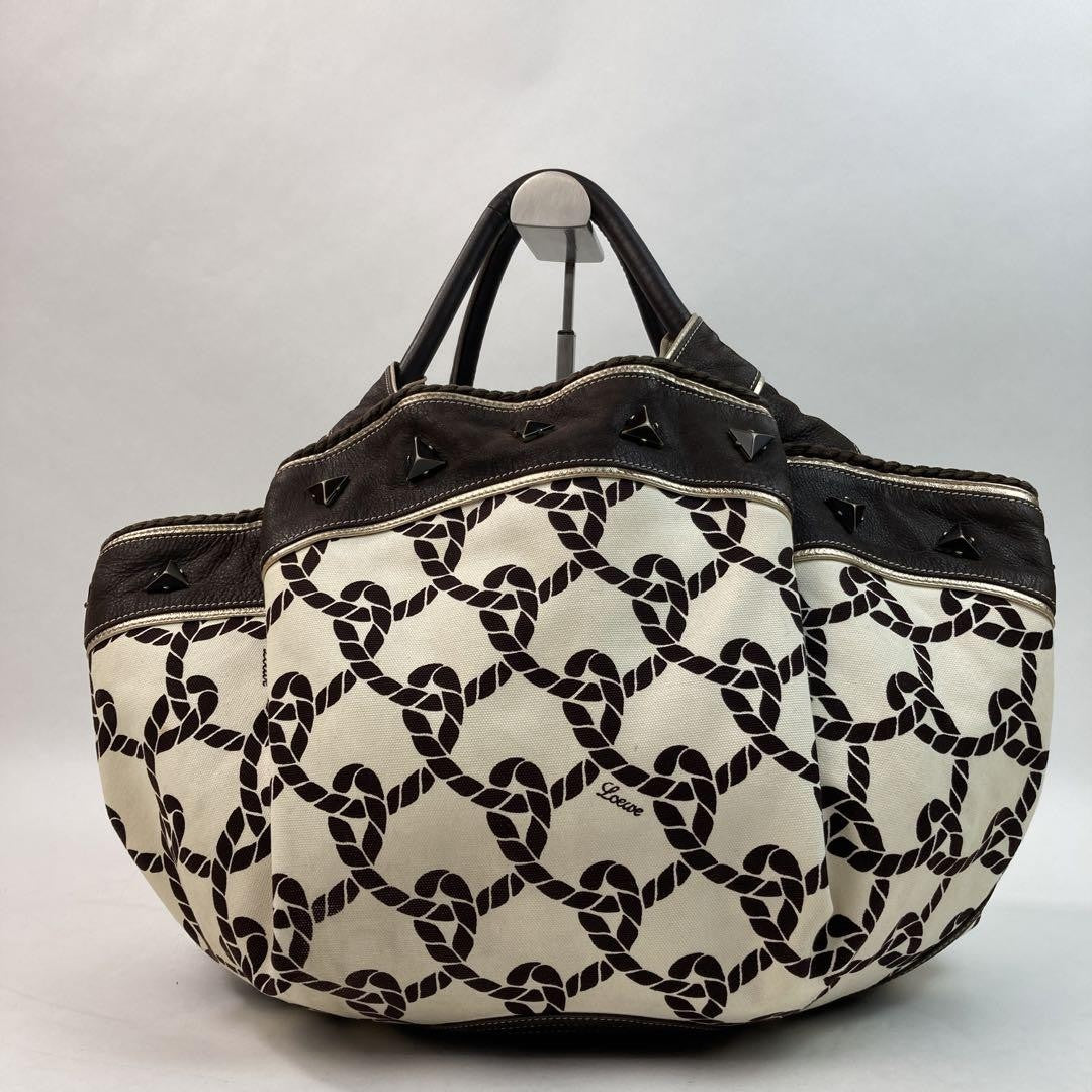 LOEWE Hand Bag Tote Purse Aire Canvas Leather Brown Off White Authentic