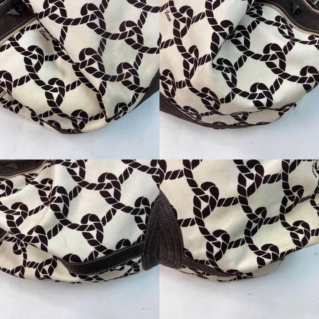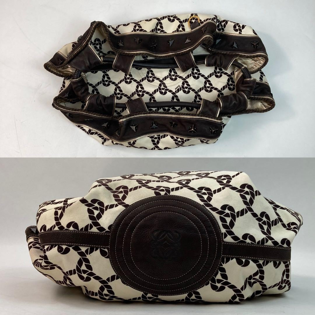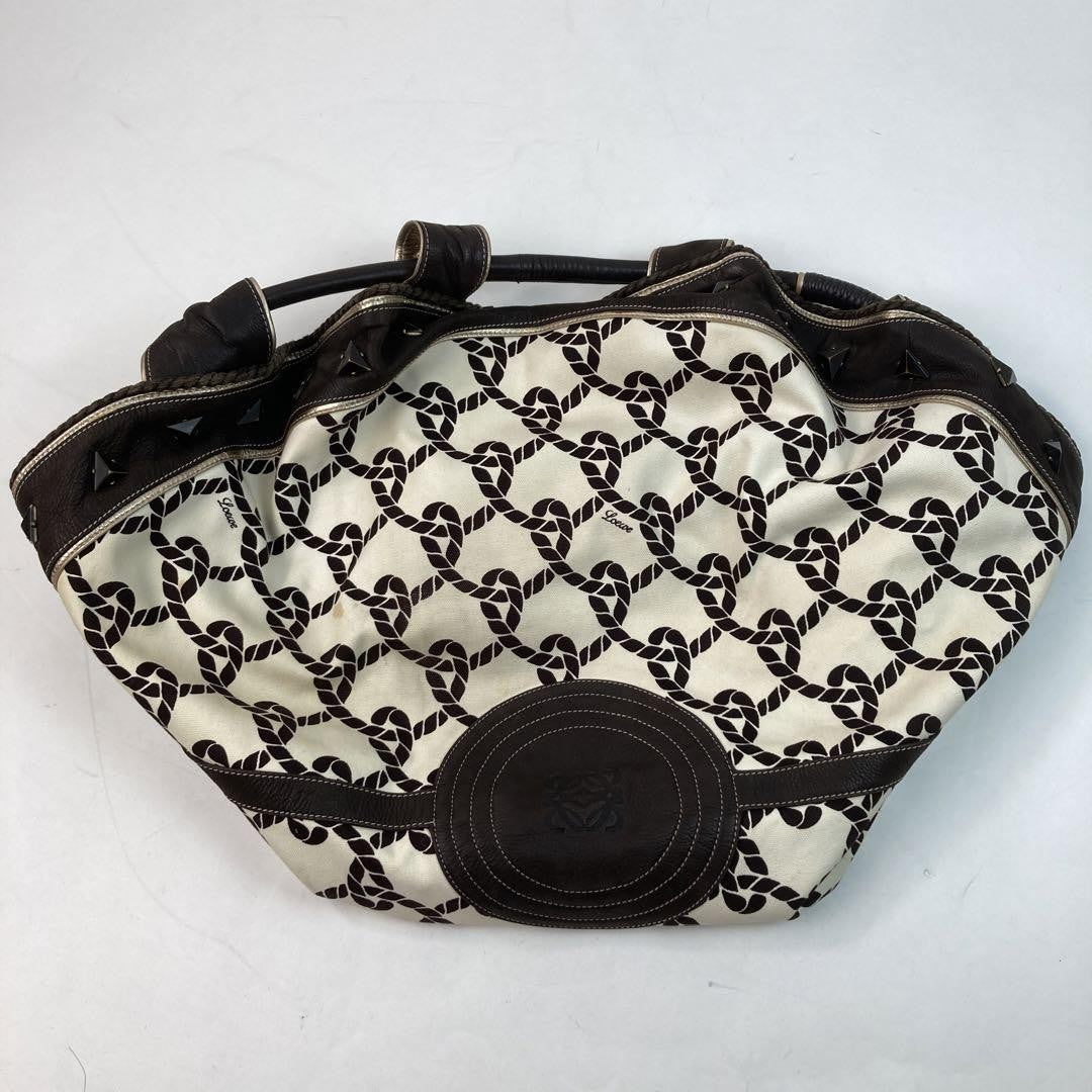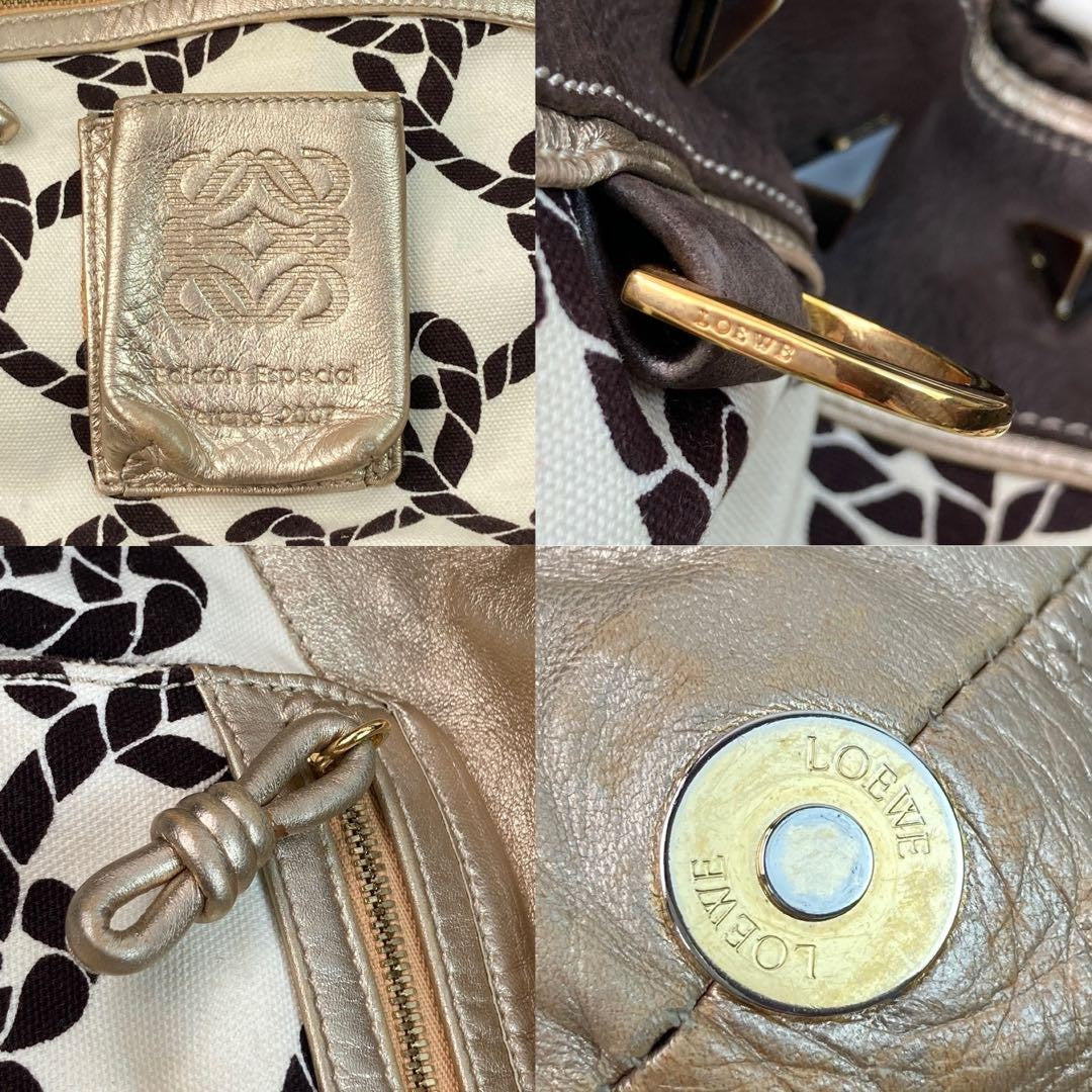 LOEWE Hand Bag Tote Purse Aire Canvas Leather Brown Off White Authentic