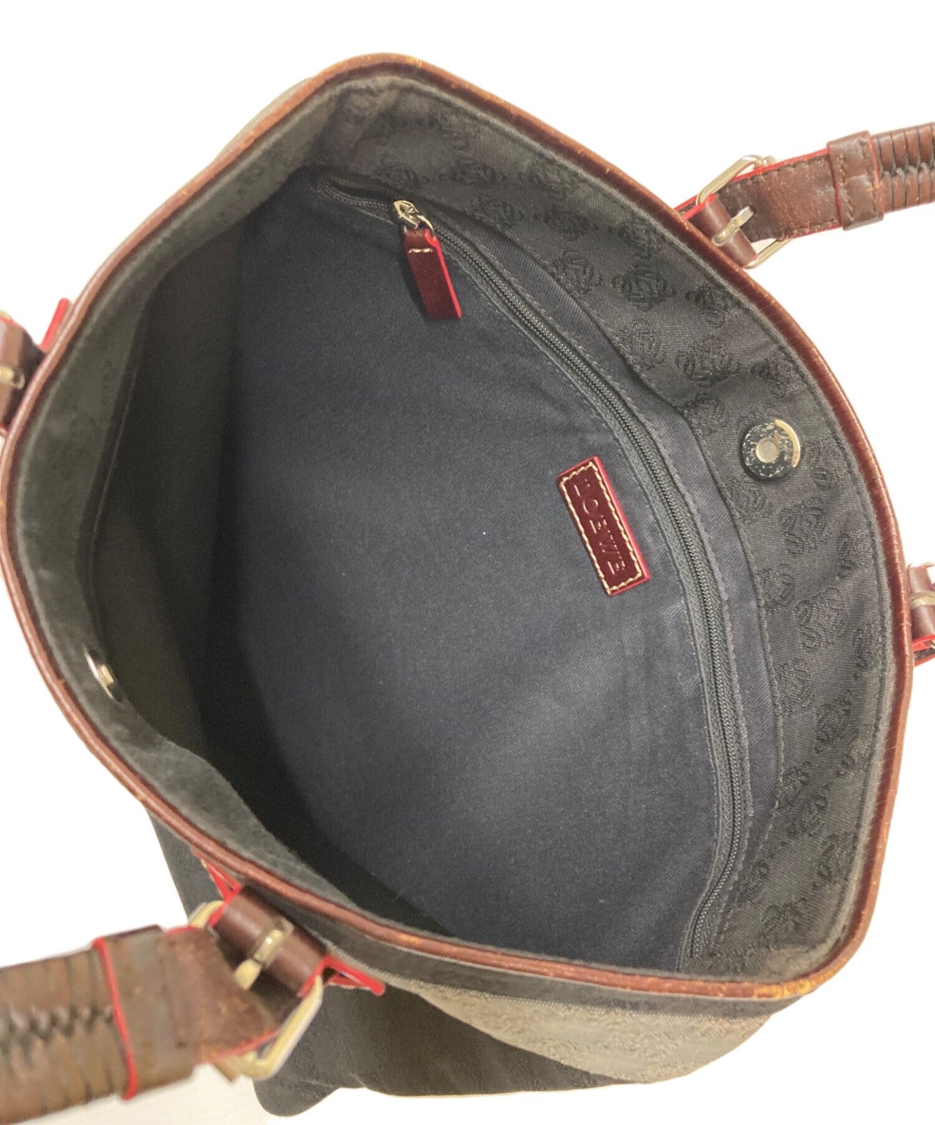 LOEWE Hand Bag Tote Purse Anagram Canvas Black Authentic