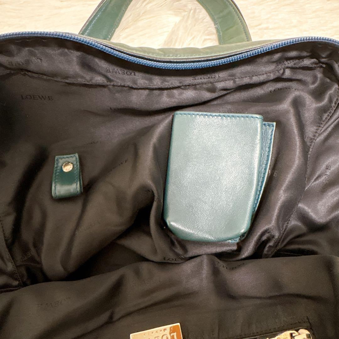 LOEWE Hand Bag Tote Purse Anagram Leather Green Authentic