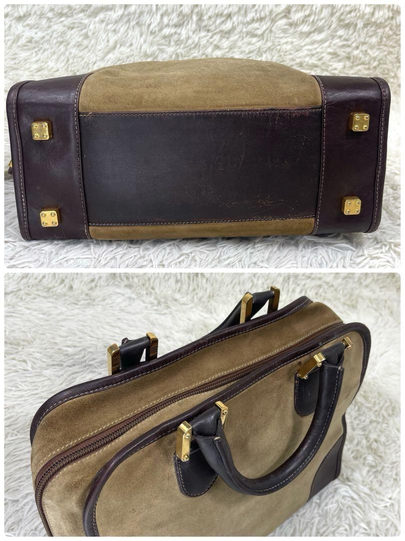 LOEWE Hand Bag Tote Purse Anagram Suede Leather Light Brown Authentic