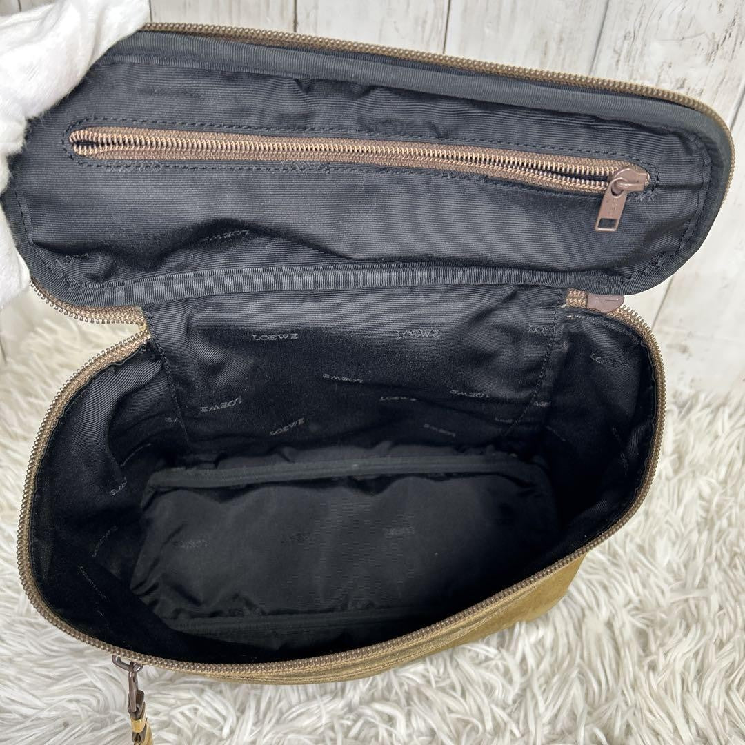 LOEWE Hand Bag Tote Purse Vanity Bag Anagram Suede Brown Authentic