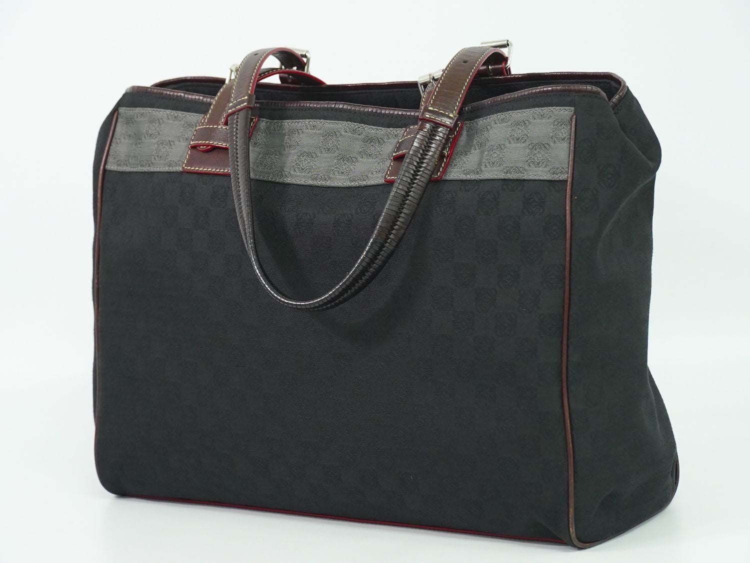LOEWE Hand Shoulder Bag Tote Purse Anagram Canvas Black Gray Authentic