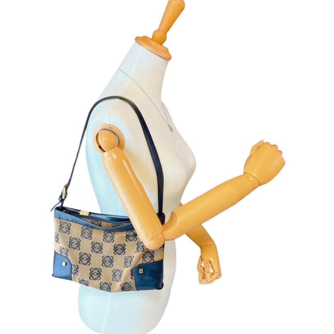 LOEWE Shoulder Bag Purse Anagram Canvas Leather Beige Authentic