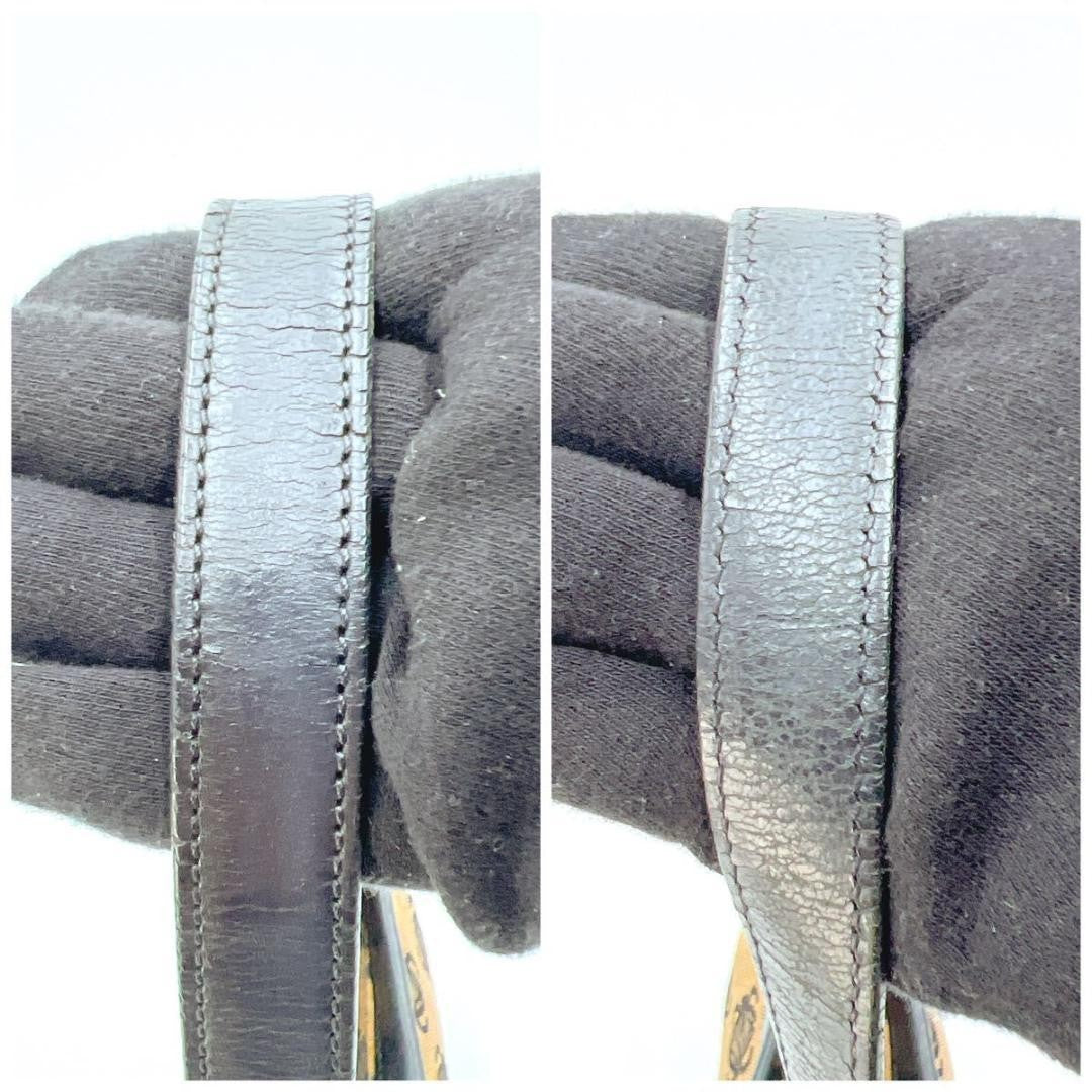 Please see the photos for details. There is some slight scuffing on the canvas portion of the top of the bag (see photo 5). This is only noticeable up close and is not noticeable when in use. The bag is otherwise in excellent condition, with the leather and interior in excellent condition.