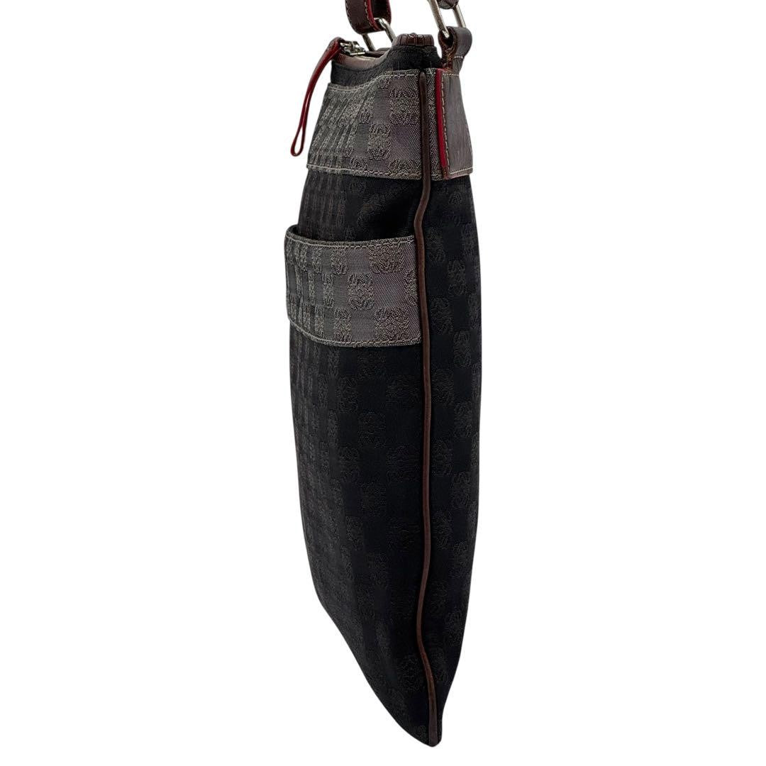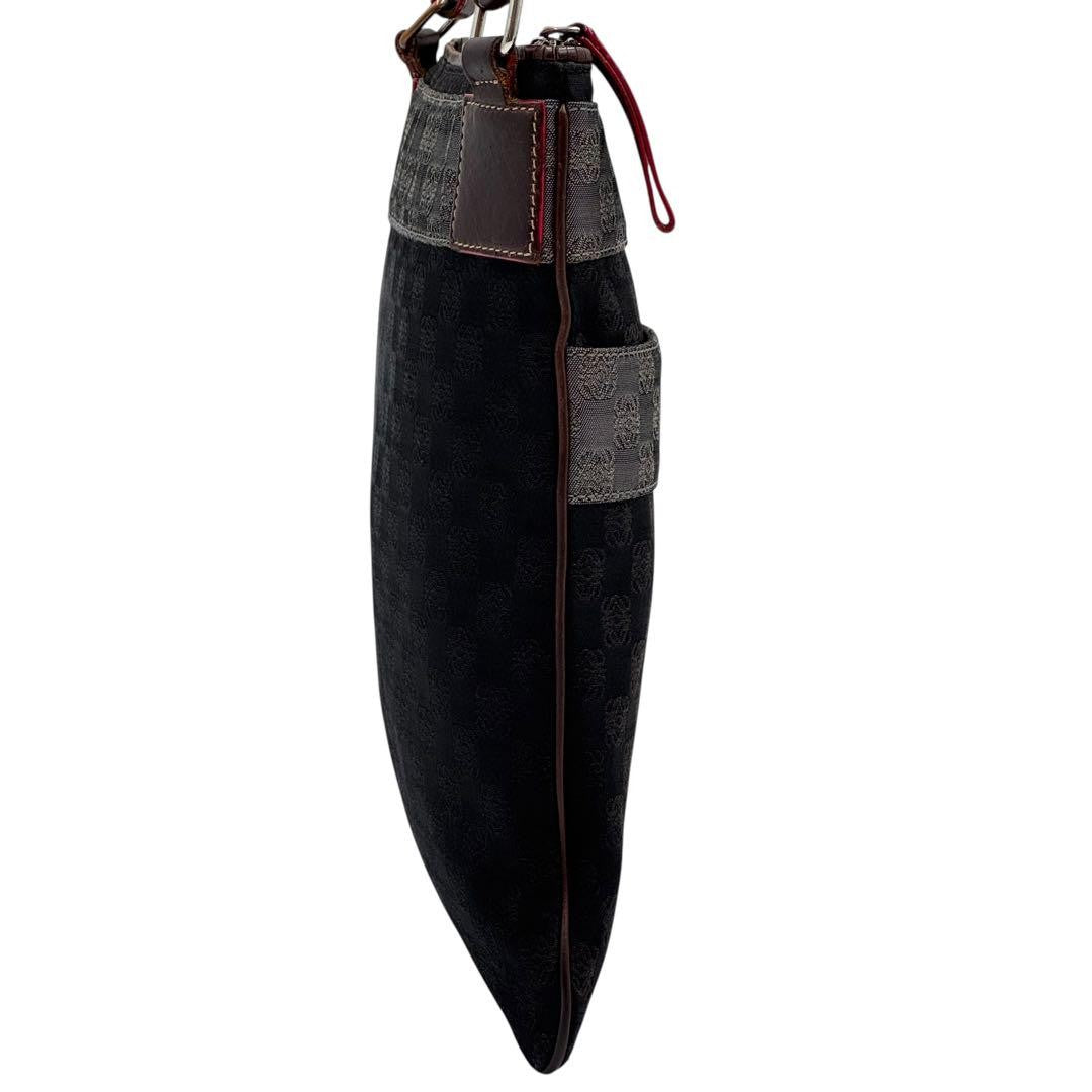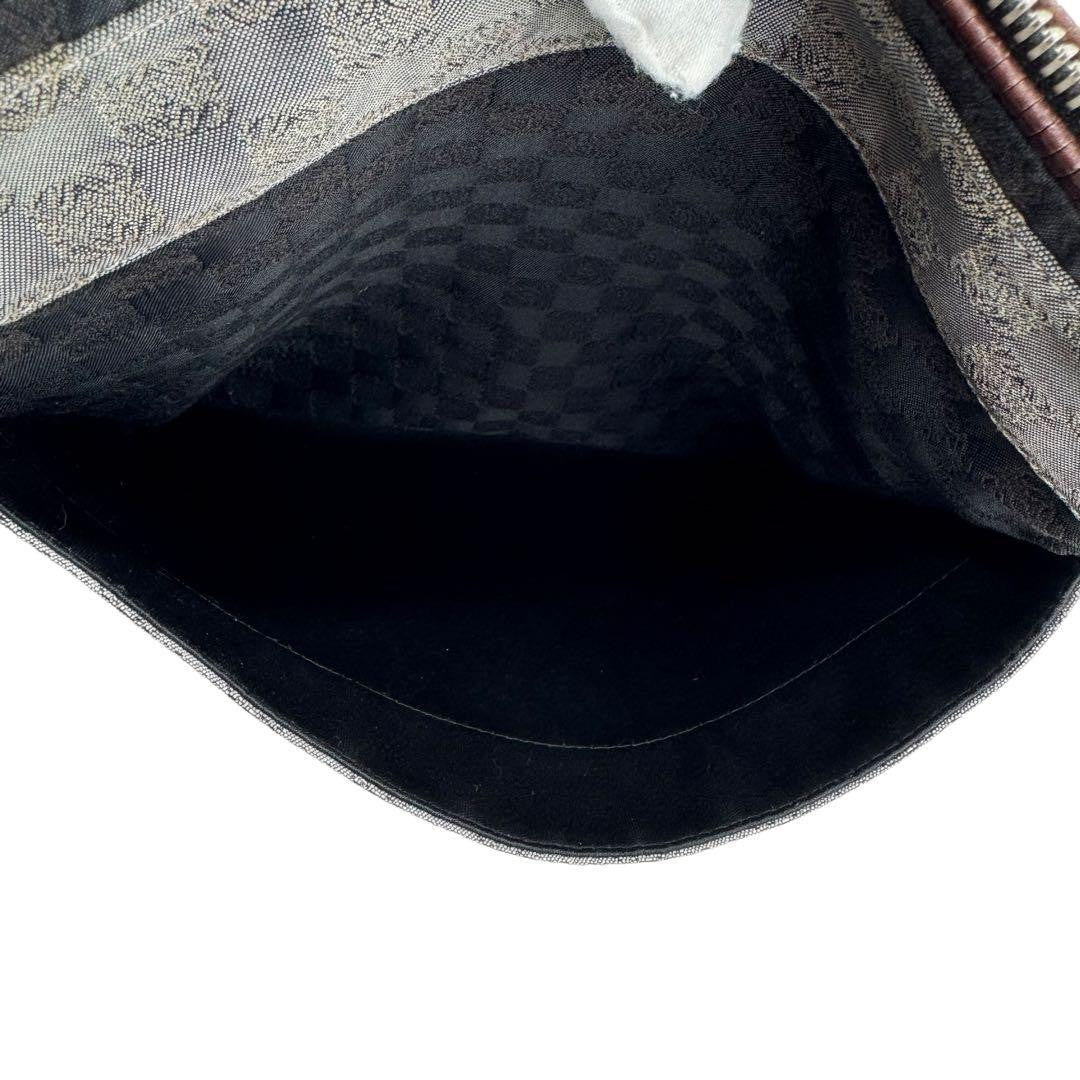 LOEWE Shoulder Bag Purse Anagram Canvas Leather Black Gray Brown Authentic