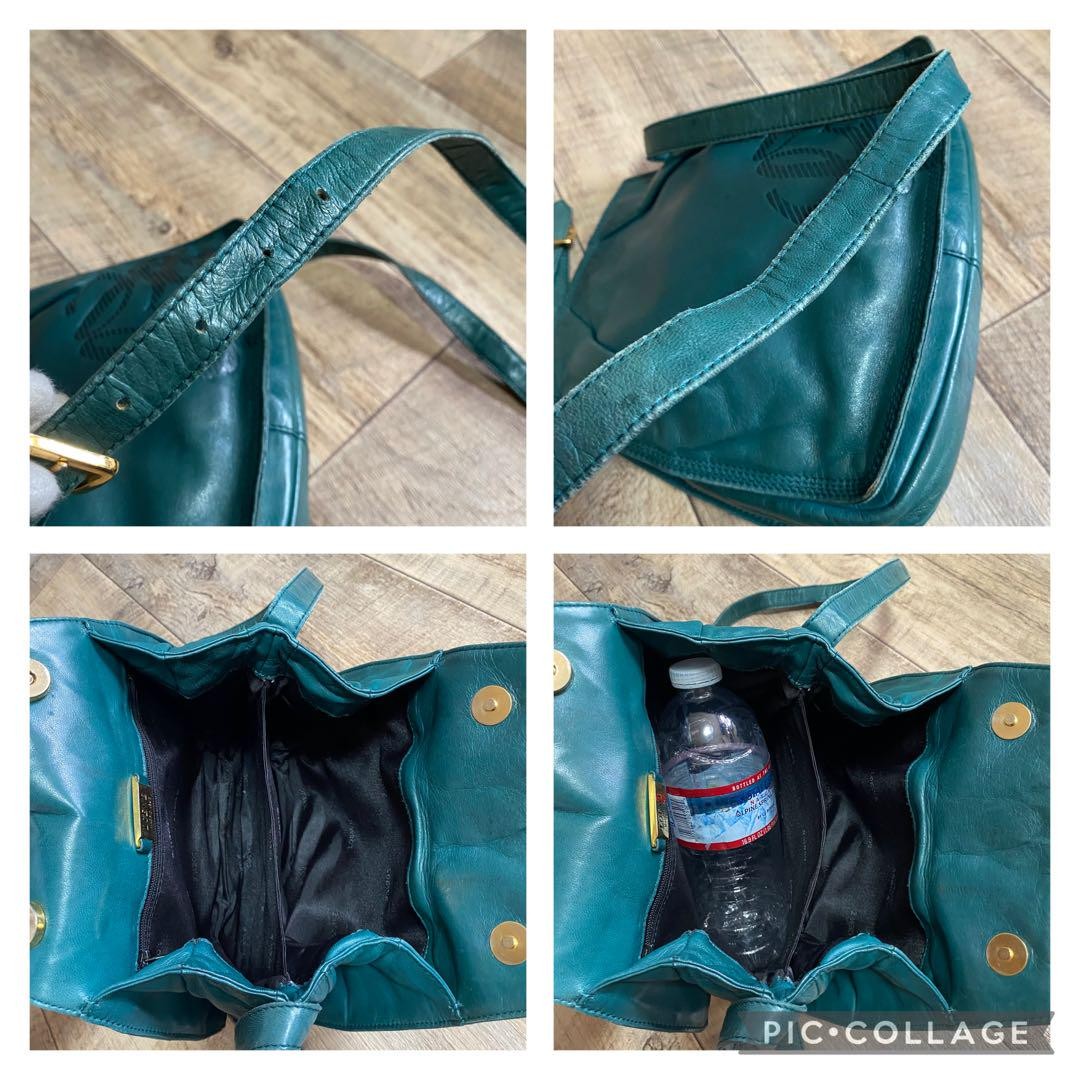 LOEWE Shoulder Bag Purse Anagram Leather Green Authentic