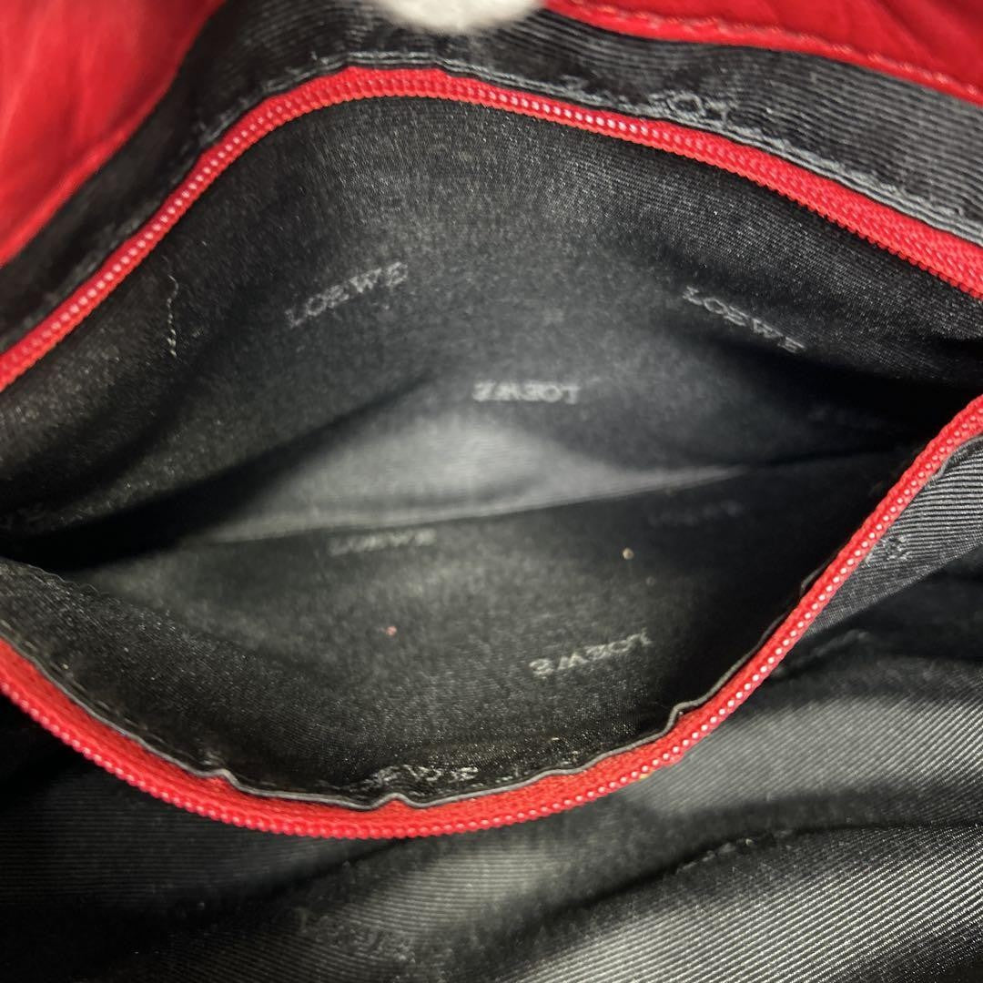 LOEWE Shoulder Bag Purse Anagram Leather Red Authentic