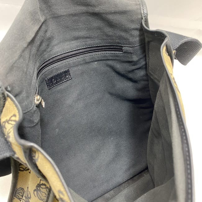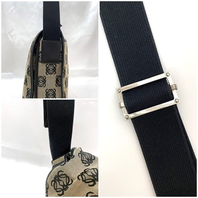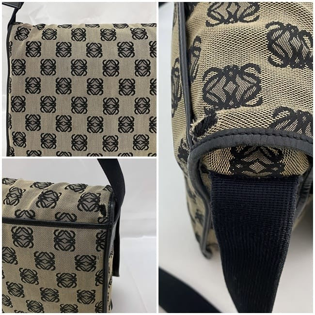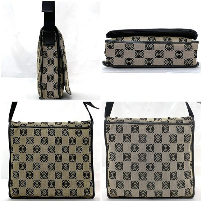 LOEWE Shoulder Bag Purse Messenger Bag Anagram Canavs Leather Beige Black Auth