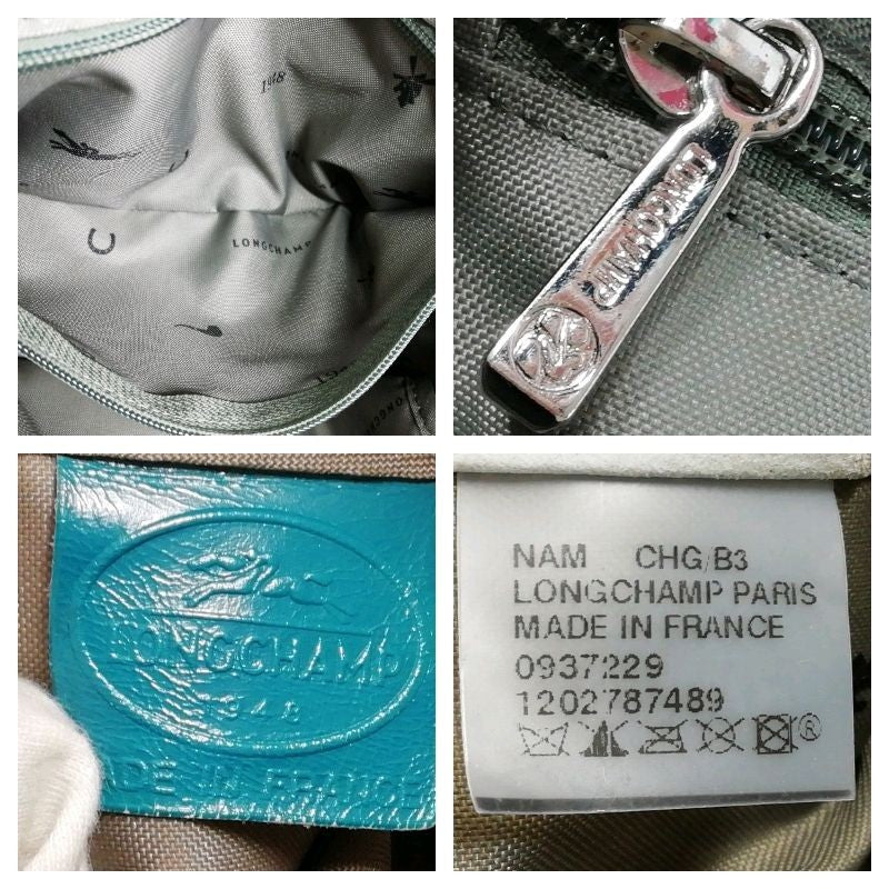 Longchamp Hand Bag Tote Bag Leather Blue Black White Authentic
