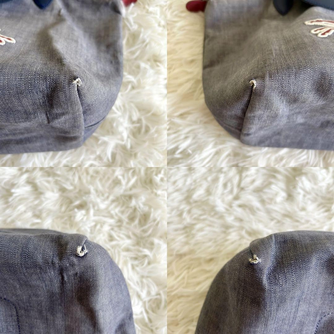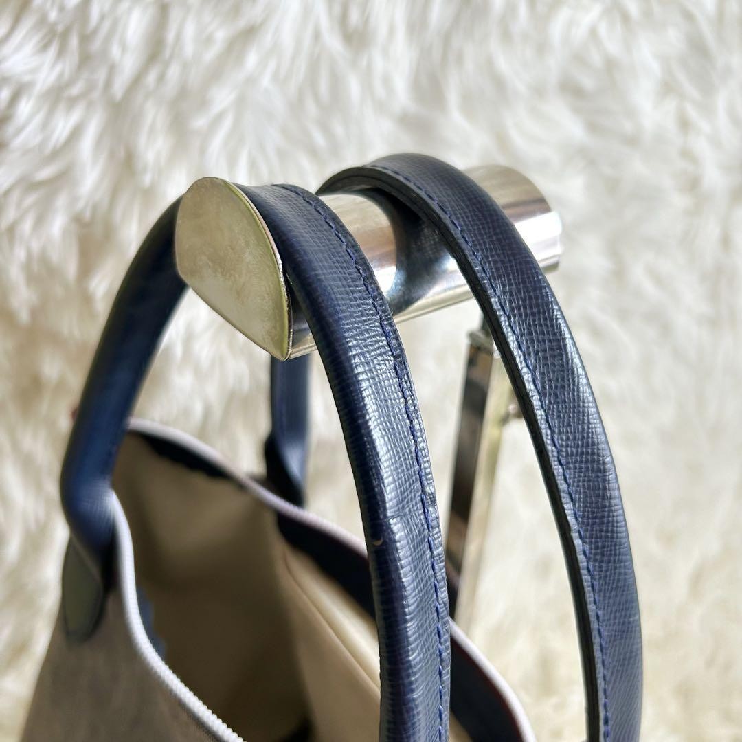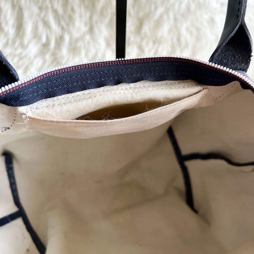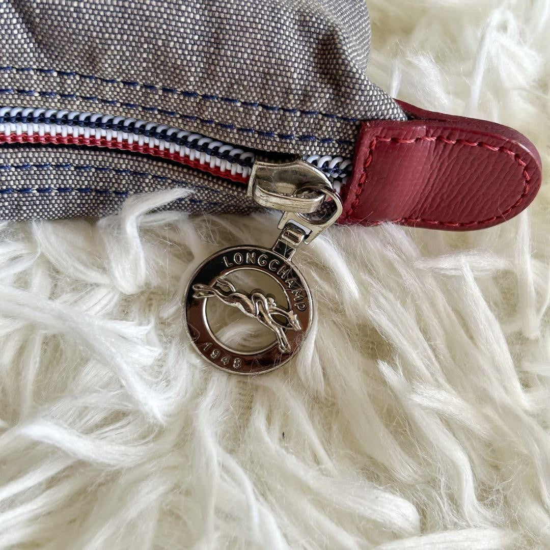 Longchamp Hand Bag Tote Purse Le Pliage Leather Denim Canvas Blue Authentic