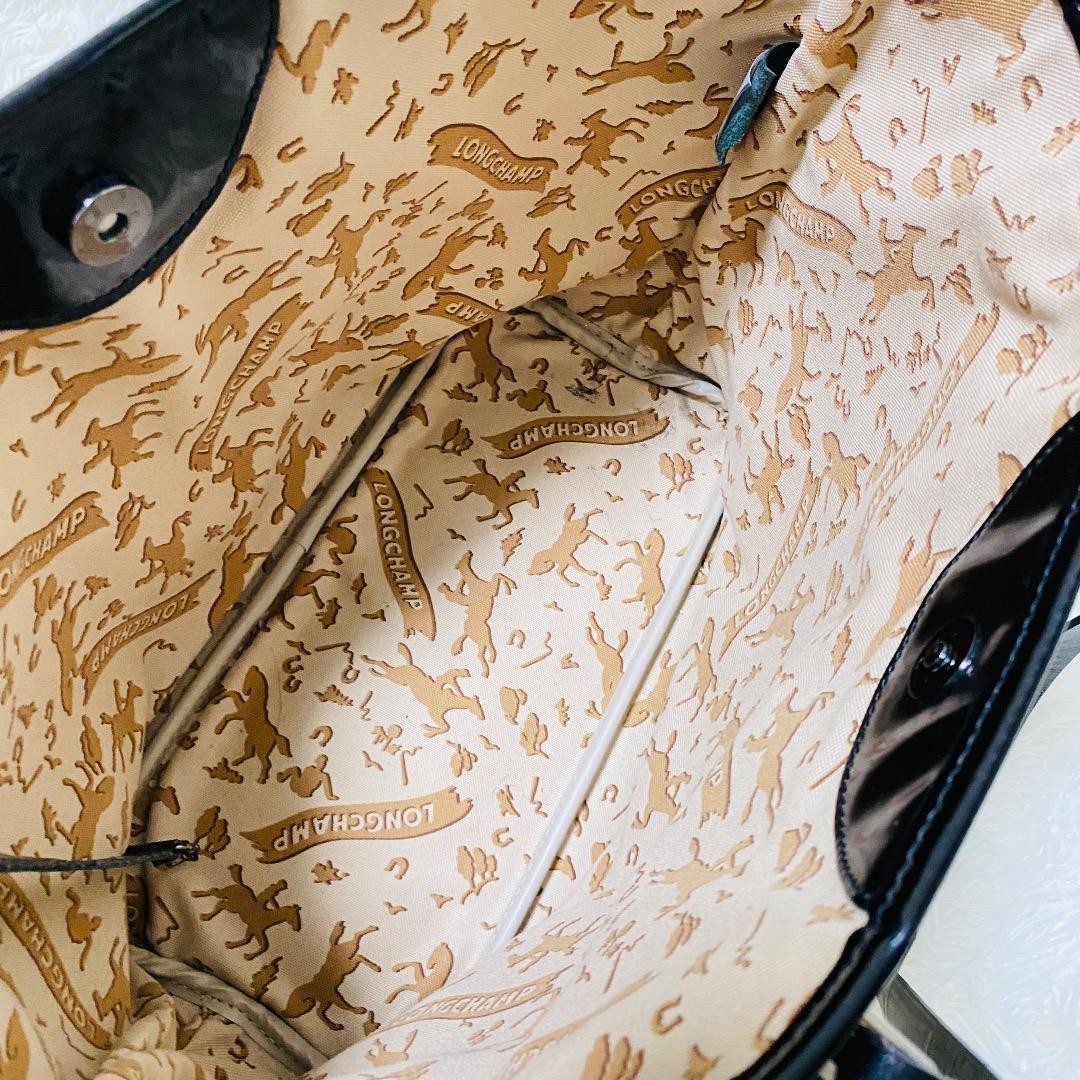 Longchamp Hand Bag Tote Purse Leather Black Authentic