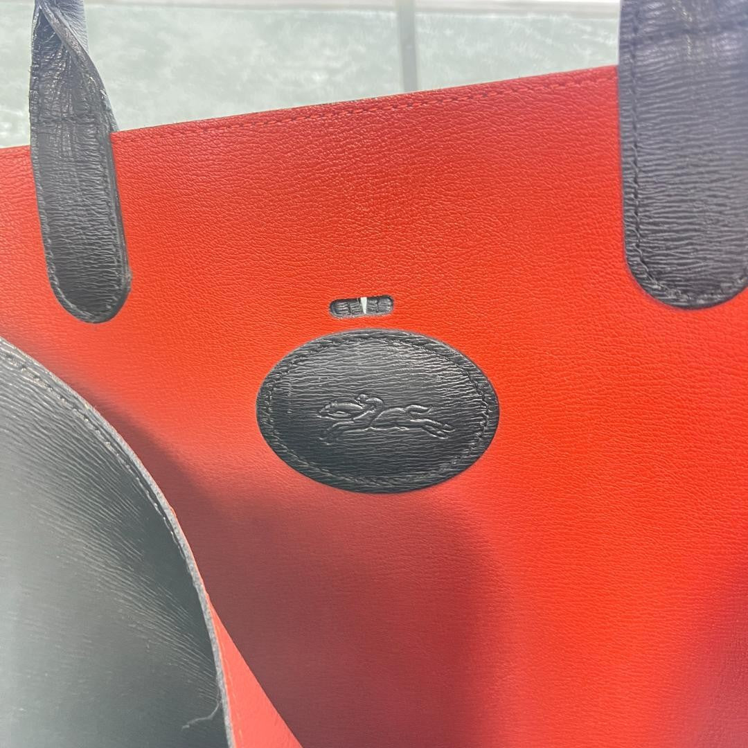 Longchamp Hand Bag Tote Purse Leather Black Red Authentic