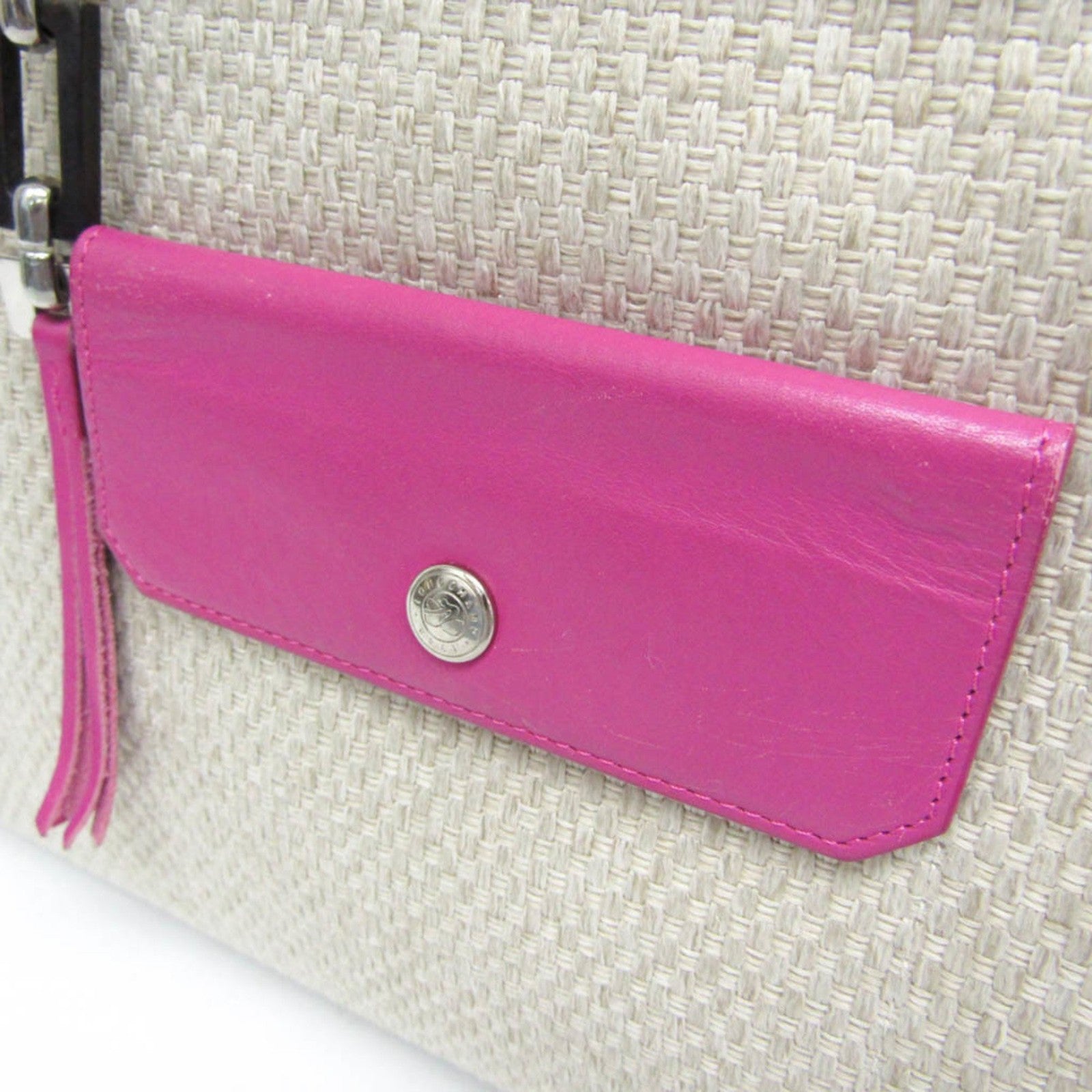 Longchamp Hand Bag Tote Purse Leather Light Beige Pink Authentic