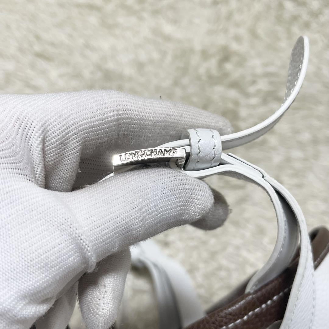Longchamp Hand Bag Tote Purse Leather White Brown Authentic
