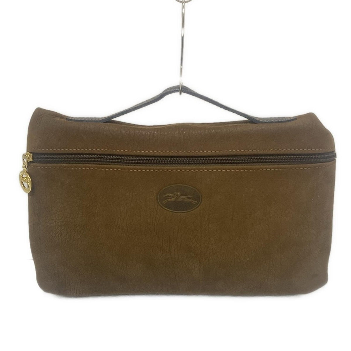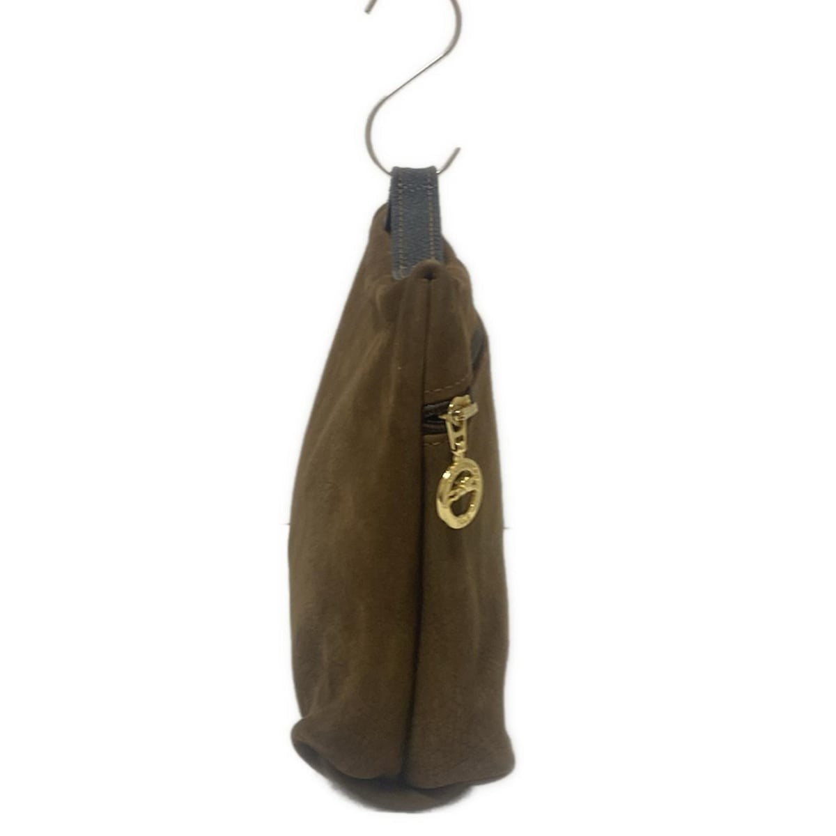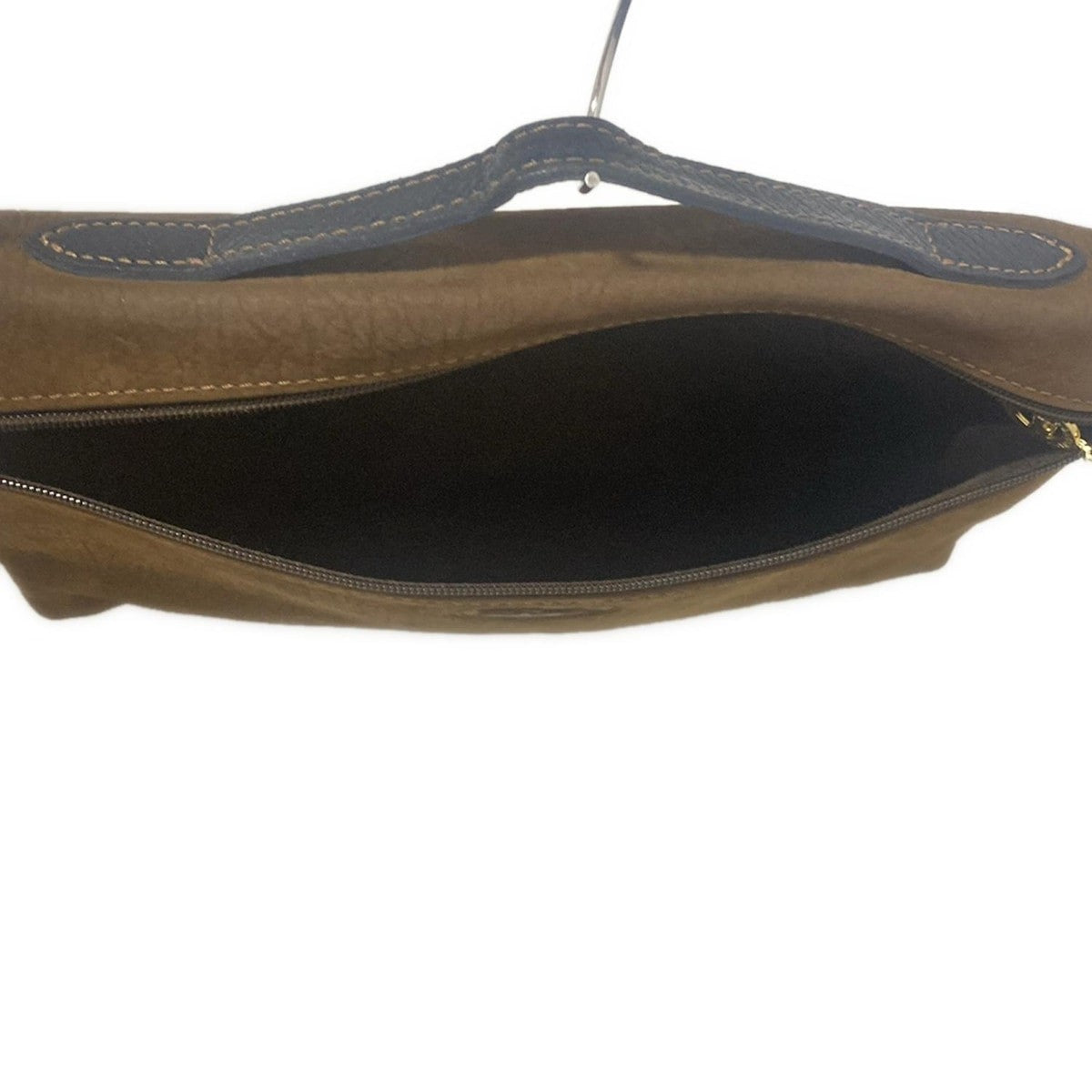 Longchamp Hand Bag Tote Purse Nubuck Leather Black Brown Authentic