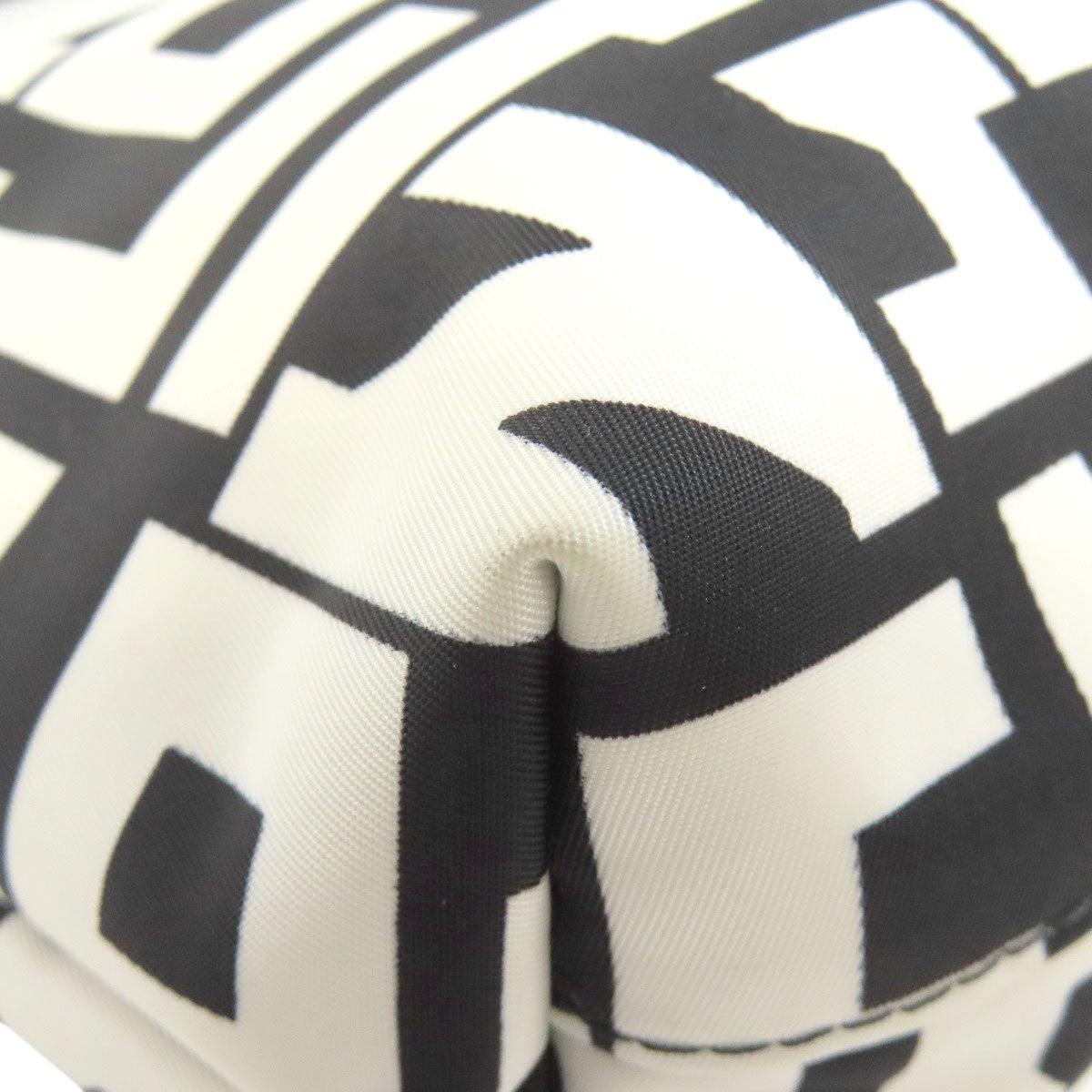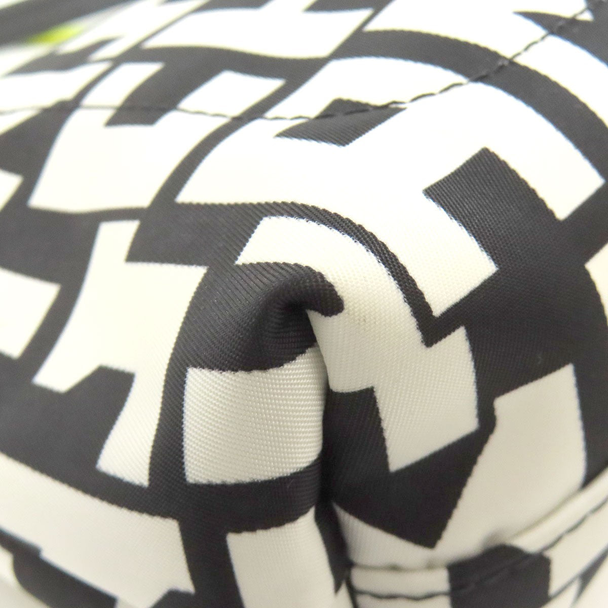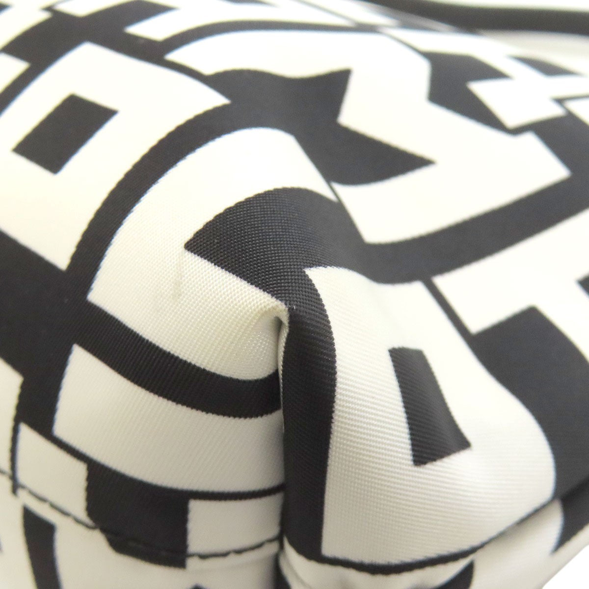 Longchamp Hand Bag Tote Purse Nylon Black White Authentic