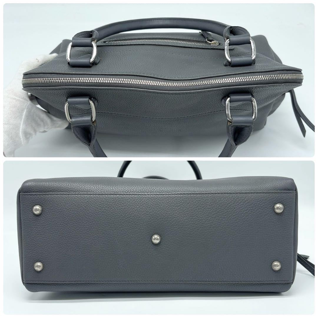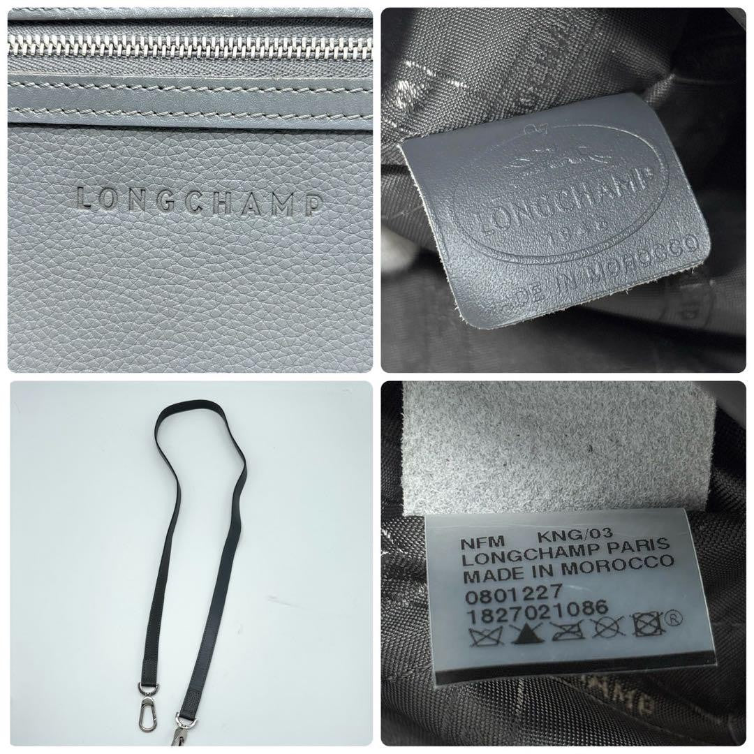 Longchamp Hand Shoulder Bag Tote Purse 2way Leather Greige Authentic